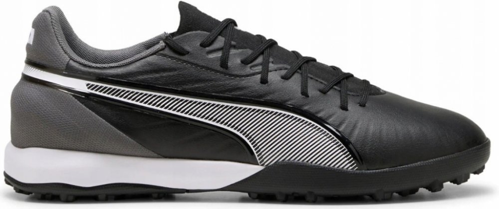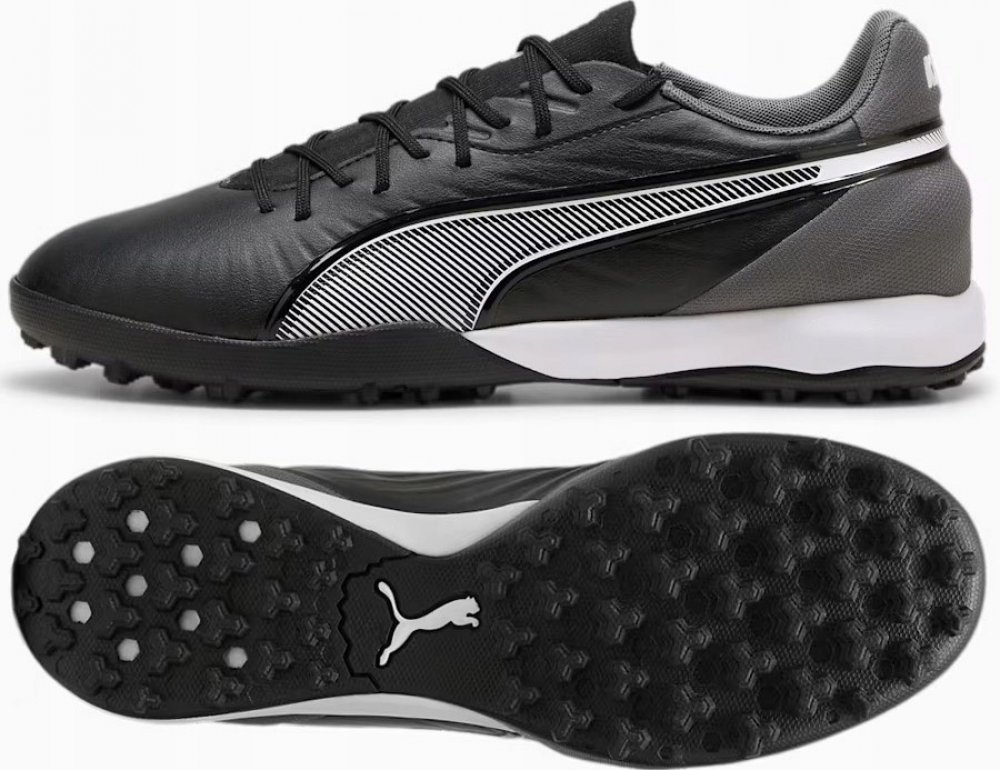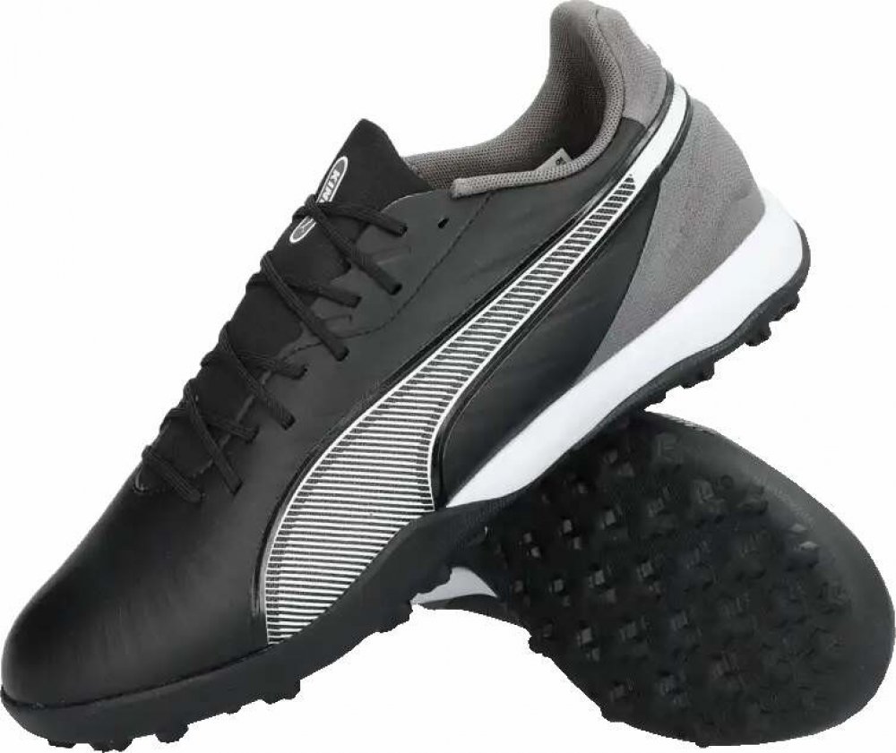 Neuvěřitelný cit pro míč. Bezkonkurenční výkon Tyto boty mají mimořádně měkký svršek ze syntetické kůže a nízko vykrojenou, zasouvací konstrukci, která zajišťuje skvěle sedí. Nízká vnější podrážka s mnoha zátkami zajišťuje obratnost na tvrdém povrchu a umělém trávníku. Poznejte KRÁLE z PUMA.