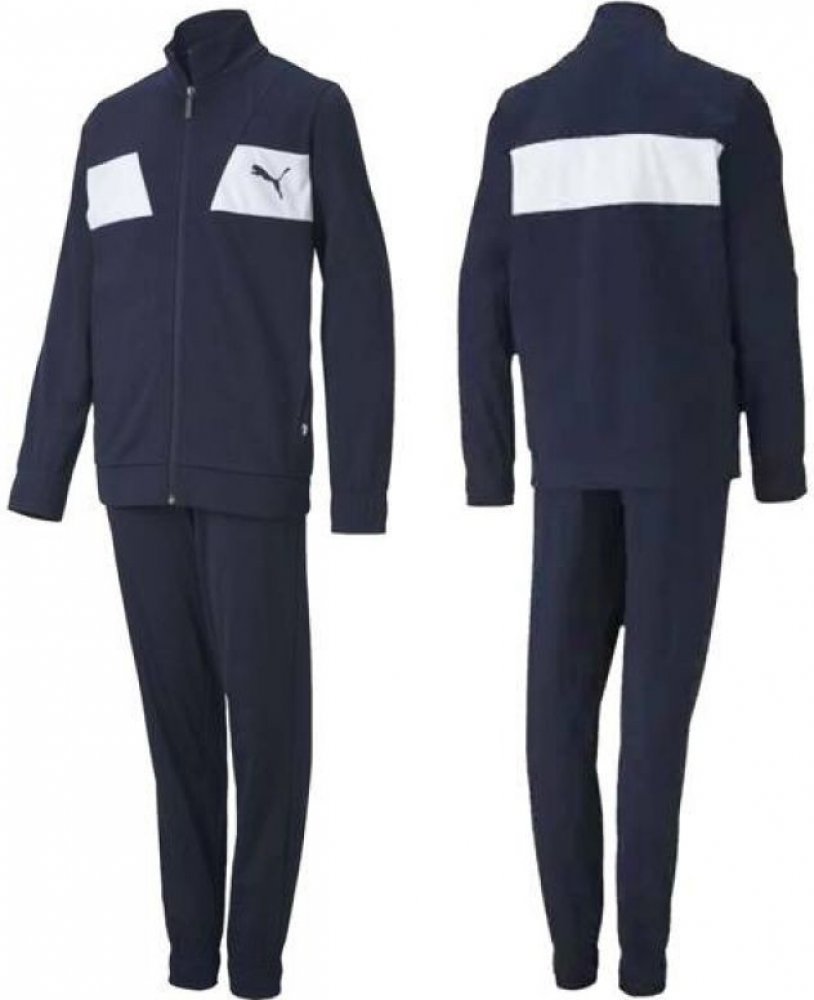Dětská sportovní souprava Puma Poly Suit Cl v tmavě modré barvě. Pohodlná mikina se stojáčkem a zip zapínáním. Tepláky s elastickým pasem a vnitřní šňůrkou. Ideální pro sport i volný čas. Dětská sportovní souprava Puma Poly Suit Cl v klasickém nadčasovém designu je skvělou volbou pro všechny malé sportovce. Souprava z měkkého a odolného polyesteru je ideální pro sportovní aktivity, hraní si s kamarády i pro běžné nošení. Mikina se stojáčkem a zapínáním na zip nabízí ochranu před chladem. Elastické manžety na rukávech a spodním okraji mikiny zajistí, že mikina perfektně sedne a nebrání v pohybu. Dvě praktické kapsy na mikině i kalhotách poskytují dostatek prostoru pro drobné nezbytnosti. Tepláky v přiléhavém střihu s elastickým pasem a vnitřní šňůrkou se snadno přizpůsobí postavě. Polopřiléhavý střih Regular Fit mikiny padne perfektně a zároveň poskytuje dostatek volnosti pro pohyb. Souprava v tmavě modré barvě je zdobena ikonickým logem Puma Cat na hrudi a nohavici. Polyesterový materiál je rychleschnoucí, nemačká se a snadno se udržuje. Tato souprava je ideální volbou pro malé sportovce, kteří ocení pohodlí a styl.Materiál: 100% polyesterStřih: Regular Fit (mikina), přiléhavý (tepláky)Aktivity: Sport, volný čas