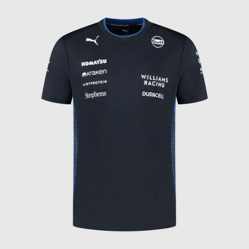 Nové týmové tričko týmu Formule 1 Williams Racing. Tmavě modrá barva doplněná luxusním potiskem Williams a logy sponzorů. Nový vzdušný materiál, pohodlné na nošení.