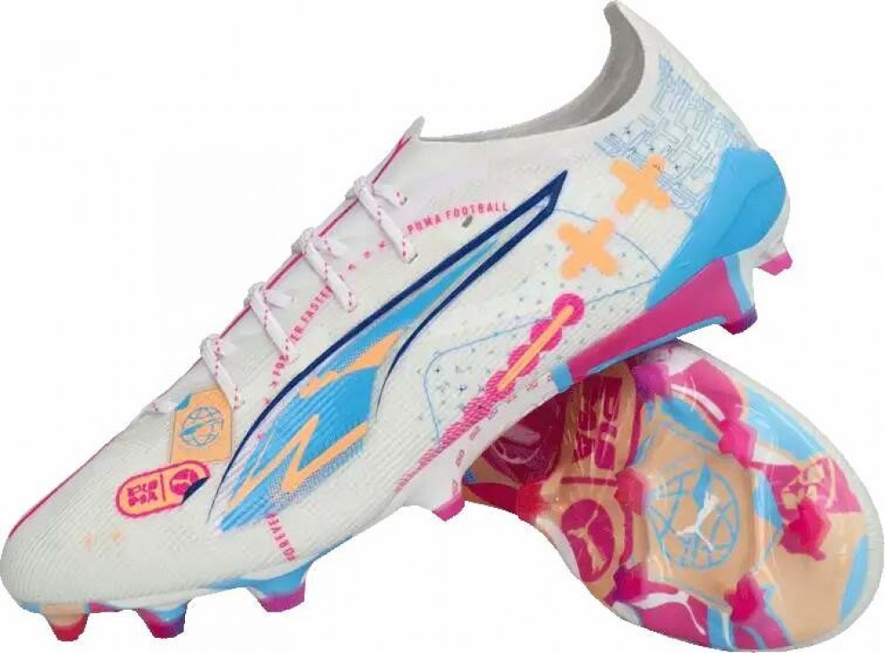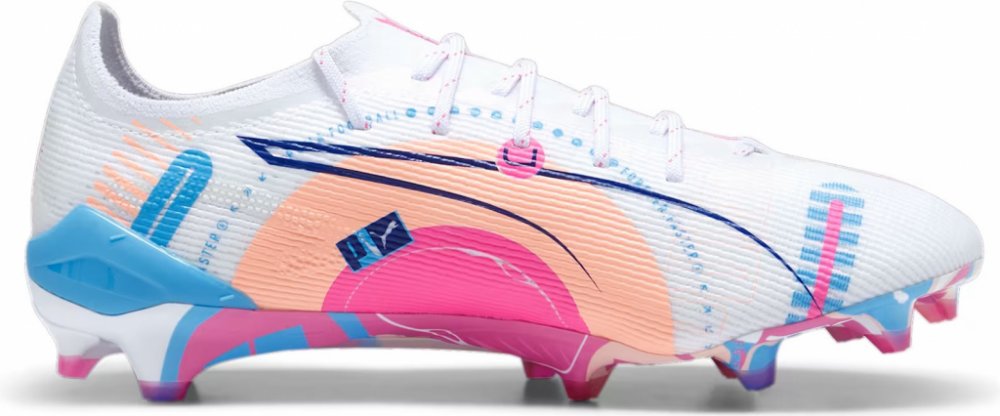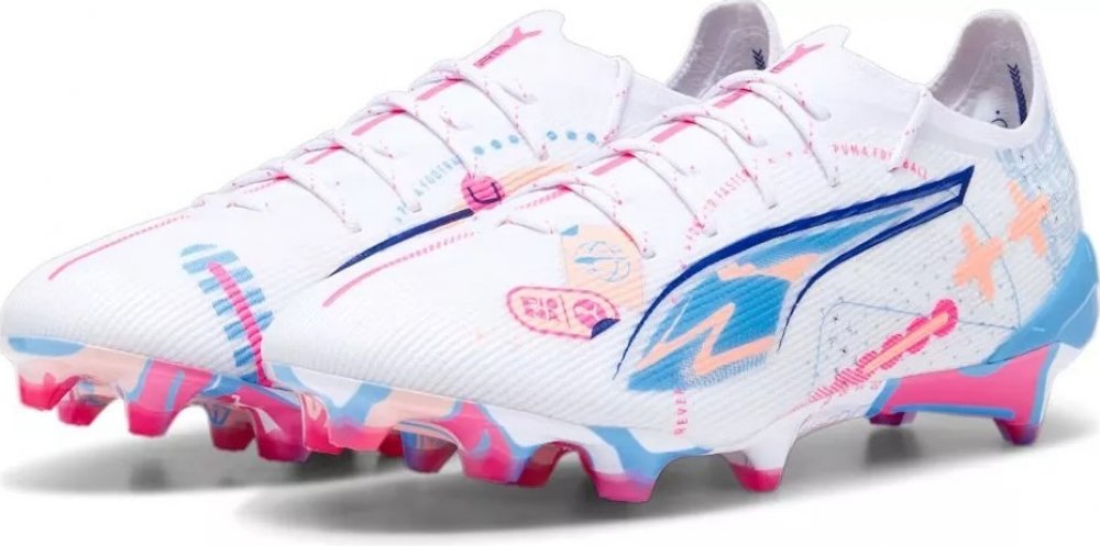 Pánské kopačky lisovky Puma Ultra 5 Ultimate Volume Up FG v novém bílém barevném provedení z kolekce Puma White Pack jsou navrženy pro rychlost a získáš s nimi pocit vyladěného stroje na nohou.