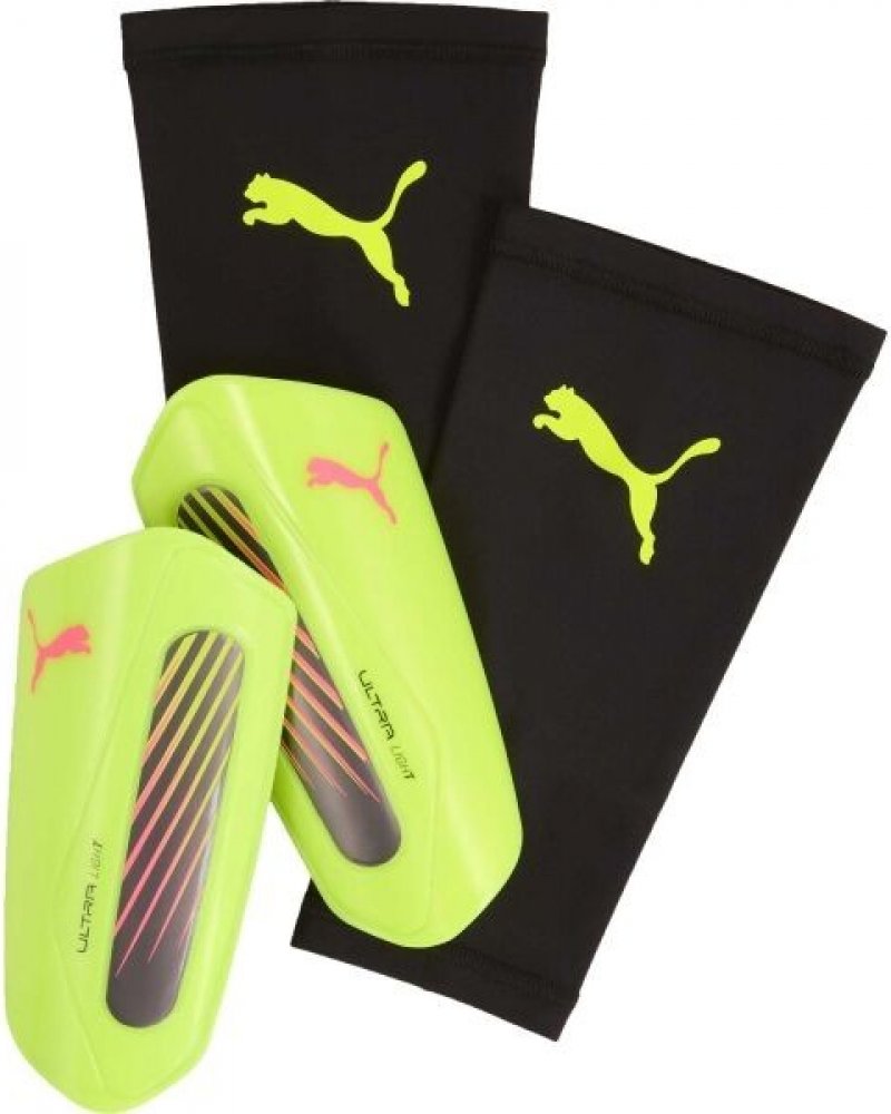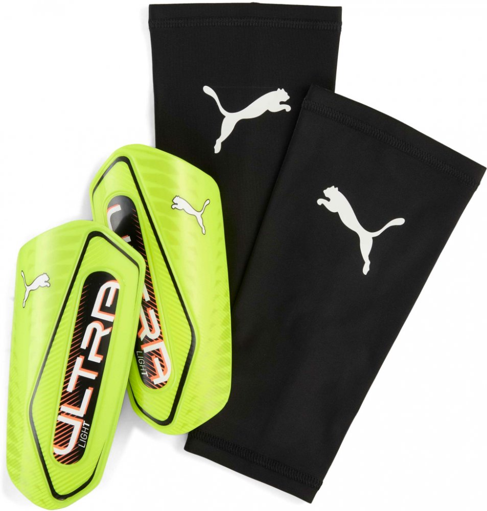 Puma Ultra Light Sleeve — ultralehké fotbalové chrániče holeně s pevnou skořepinou a kompresním návlekem pro bezpečnou ochranu a volnost pohybu během hry. Fotbalové chrániče Puma Ultra Light Sleeve kombinují odolnou ochrannou skořepinu z termoplastického materiálu s měkkou výstelkou z EVA pěny, která efektivně tlumí nárazy a zabraňuje nepříjemným úderům při kontaktu. Kompresní návlek z prodyšného elastického materiálu (polyester + elastan) zajišťuje pevné a stabilní uchycení na noze bez potřeby dalších pásků. Lehká konstrukce minimalizuje omezení pohybu a podporuje agilitu, což z těchto chráničů dělá vhodnou volbu pro tréninky i zápasy, kdy je důležitá kombinace komfortu, bezpečnosti a výkonu.