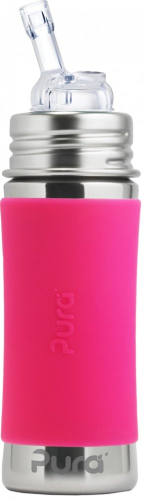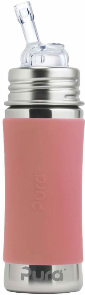 Balení obsahuje: nerezovou láhev 325ml a objímku, silikonové netekoucí PURA slámka, silikonový návlek, silikonový víčko