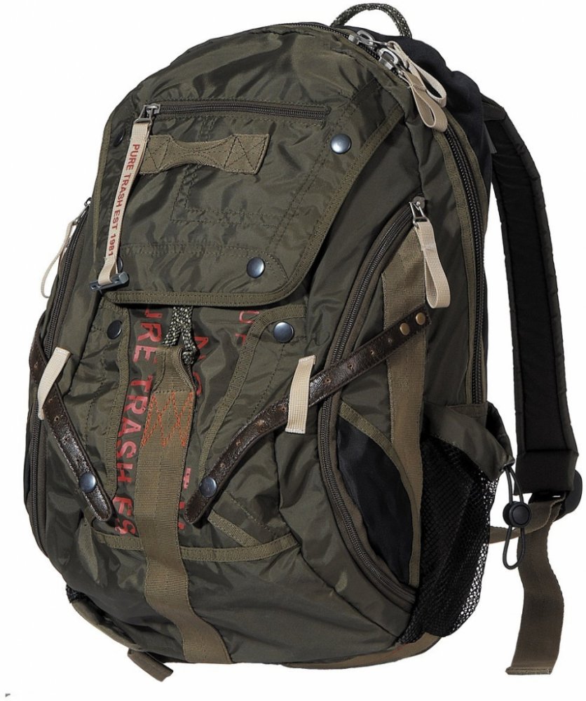 Batoh od značky Pure Trash, vyrobený v originálním "vintage" stylu.Vlastnosti:• polstrované, nastavitelné ramenní popruhy• držadlo• polstrování• hlavní přihrádka na zip• přední a horní kapsa na zip• 2 boční kapsy na zip• 2 síťové boční kapsy se stahovací šňůrkou• vnitřní kapsa na zip• kapsa na mobil