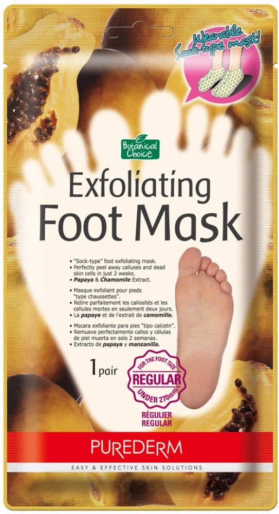 Samoslupovací maska na nohy Purederm je speciální péčí o chodidla ve formě ponožek. Během dvou týdnu postupně odstraní veškerou ztvrdlou kůži na chodidlech, pokožku viditelně zjemní a zvláční.