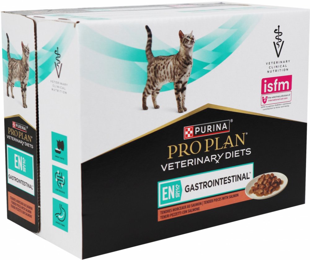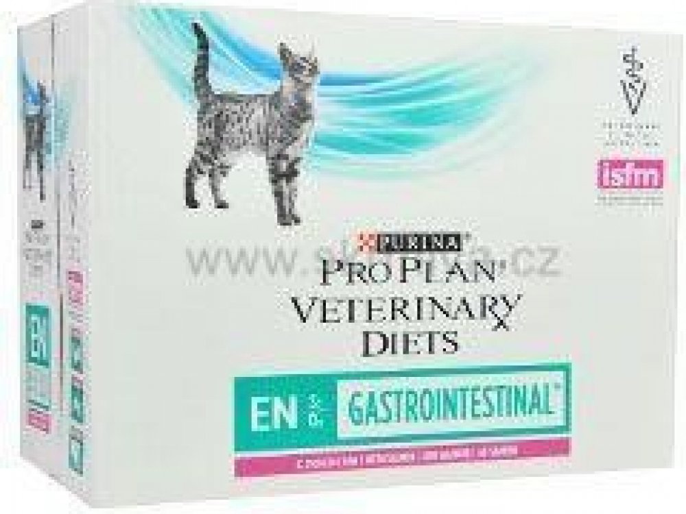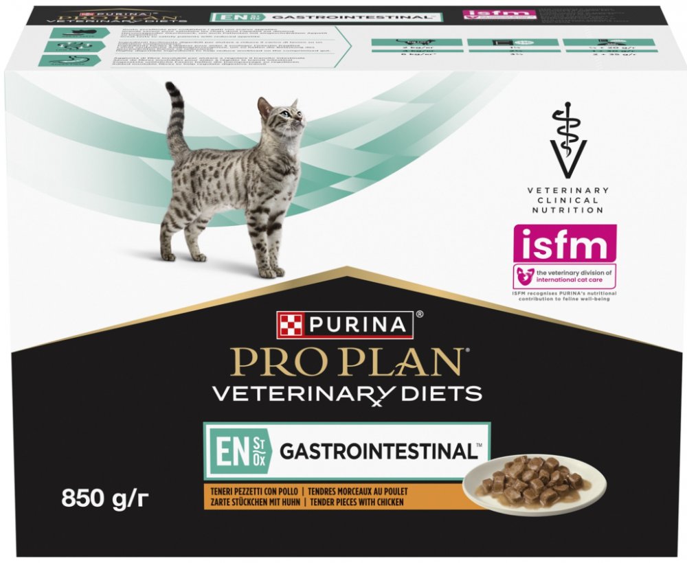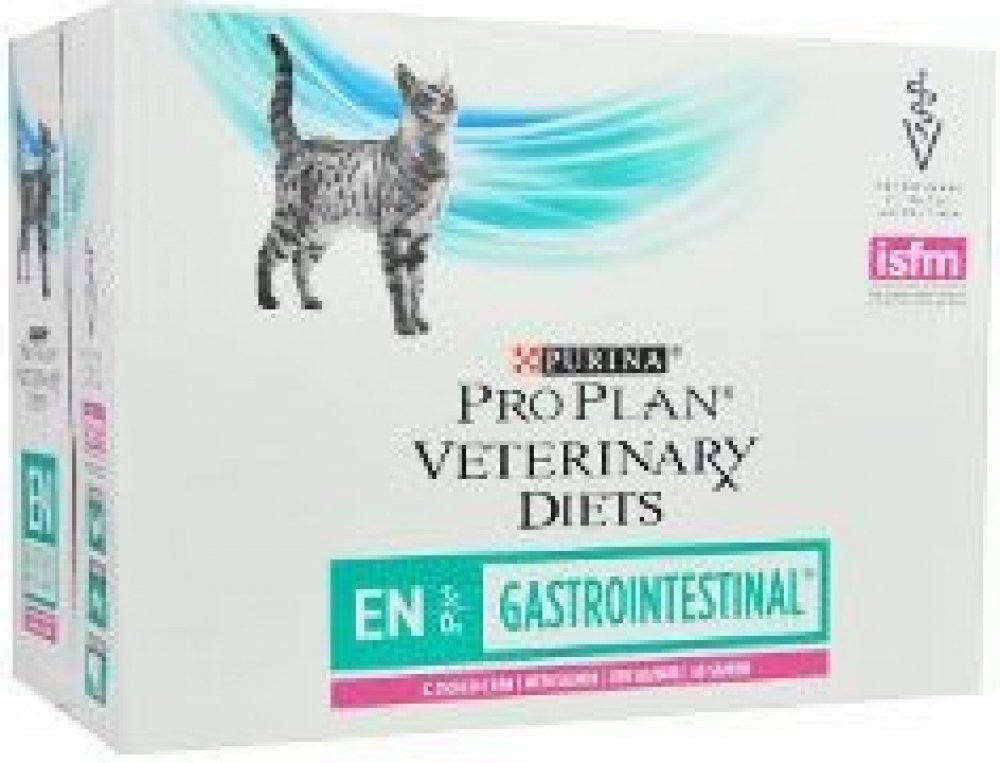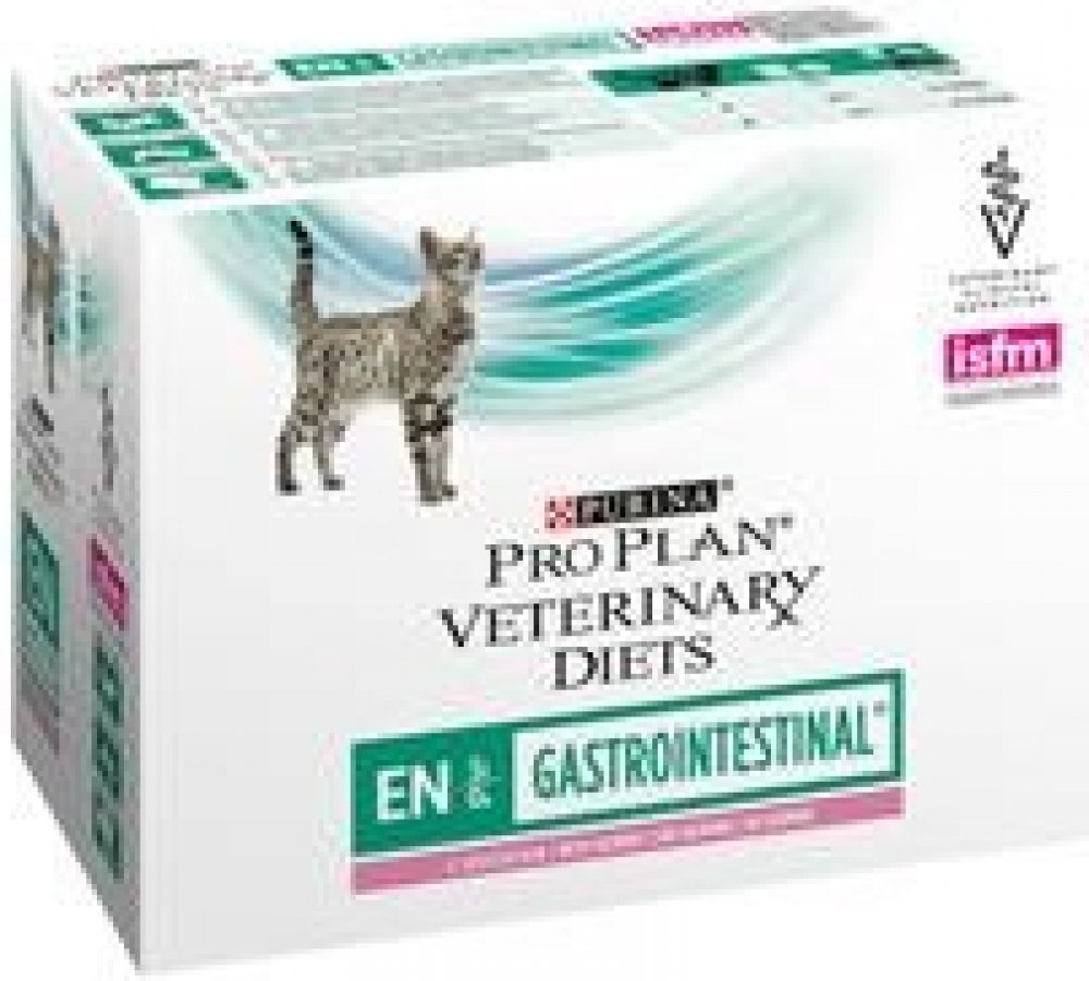 Feline EN Gastrointestinal je velmi chutné a vysoce stravitelné kompletní dietní veterinární krmivo, které pomáhá zvládnout gastrointestinální a chronická jaterní onemocnění (bez encefalopatie) u dospělých koček i u koťat. Onemocnění střev je často spojeno s malabsorpcí a maldigescí, proto dietní krmivo Feline EN Gastrointestinal obsahuje vybrané a vysoce stravitelné složky, které pomáhají snižovat zátěž postiženého střeva a minimalizovat vedlejší reakce trávicího traktu. Omezený počet zdrojů bílkovin pomáhá minimalizovat riziko vzniku nepříznivých reakcí na krmivo. Feline EN Gastrointestinal obsahuje prebiotika a omega-3 mastné kyseliny pro podporu zdravého prostředí ve střevě a je velmi chutné, což je u koček s onemocněním střev velmi důležité, protože často trpí nechutenstvím.