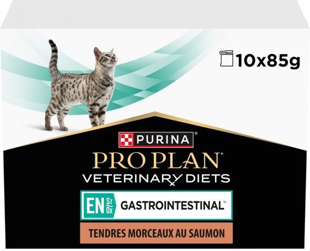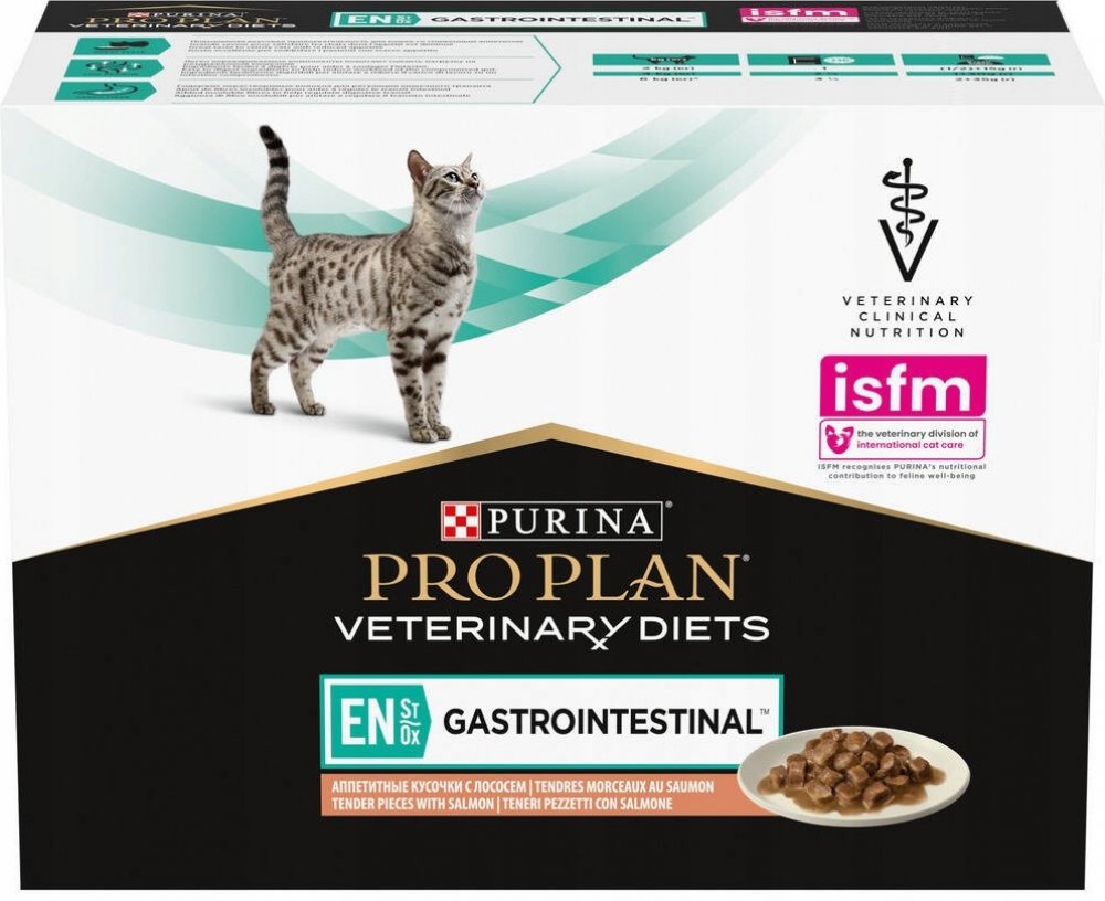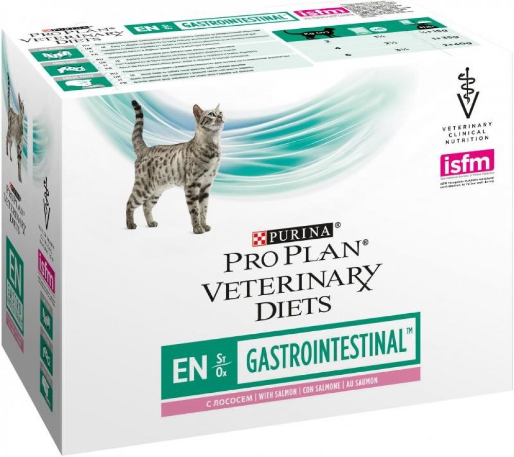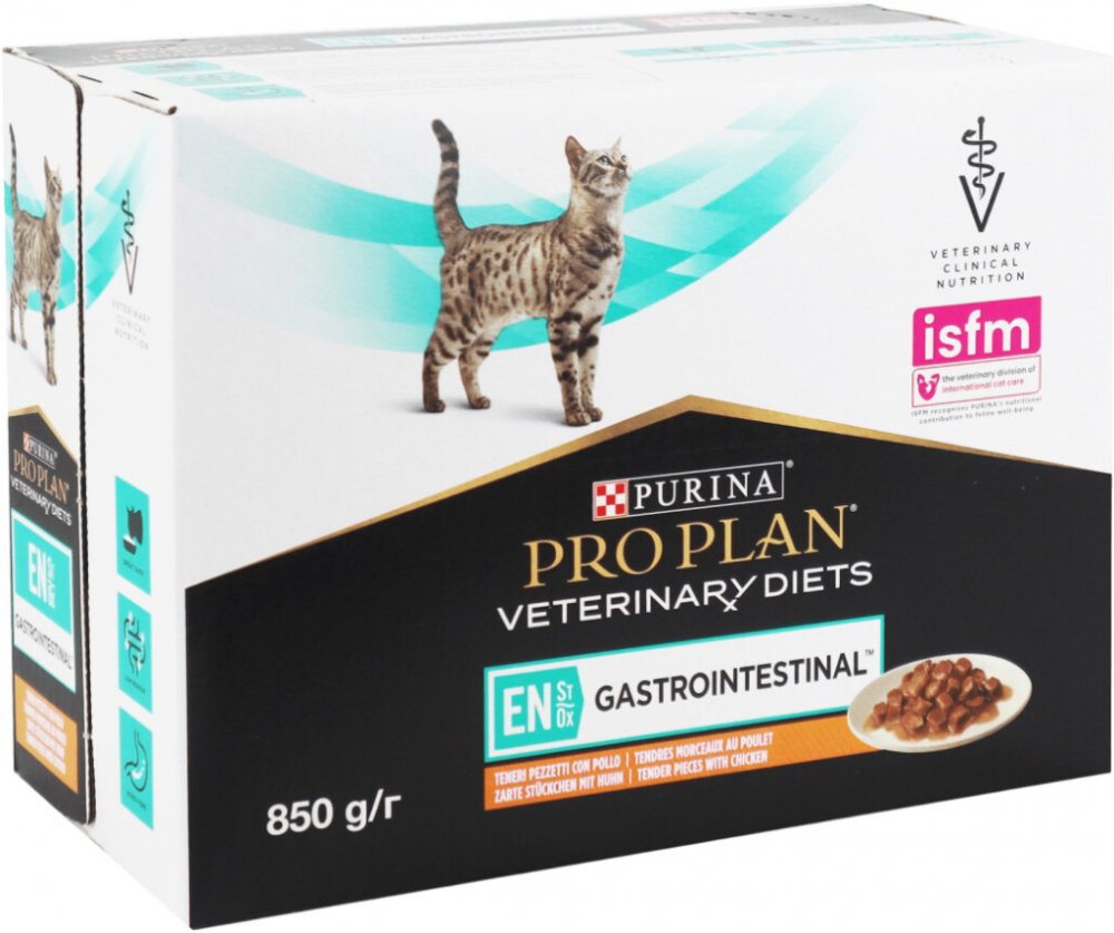 Feline EN Gastrointestinal je velmi chutné a vysoce stravitelné kompletní dietní veterinární krmivo, které pomáhá zvládnout gastrointestinální a chronická jaterní onemocnění (bez encefalopatie) u dospělých koček i u koťat. Onemocnění střev je často spojeno s malabsorpcí a maldigescí, proto dietní krmivo Feline EN Gastrointestinal obsahuje vybrané a vysoce stravitelné složky, které pomáhají snižovat zátěž postiženého střeva a minimalizovat vedlejší reakce trávicího traktu. Omezený počet zdrojů bílkovin pomáhá minimalizovat riziko vzniku nepříznivých reakcí na krmivo. Feline EN Gastrointestinal obsahuje prebiotika a omega-3 mastné kyseliny pro podporu zdravého prostředí ve střevě a je velmi chutné, což je u koček s onemocněním střev velmi důležité, protože často trpí nechutenstvím.