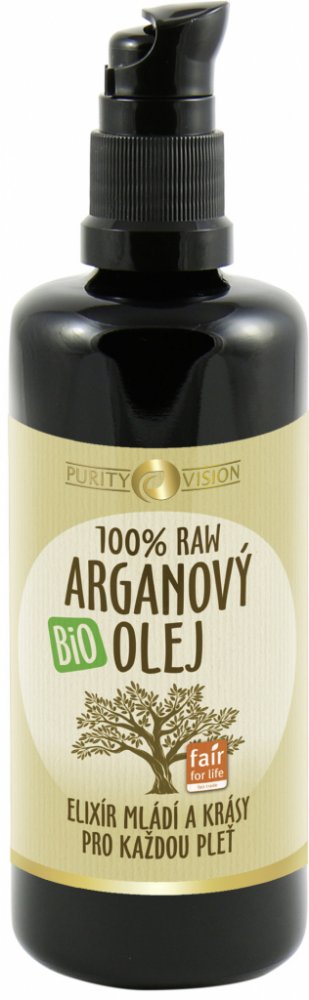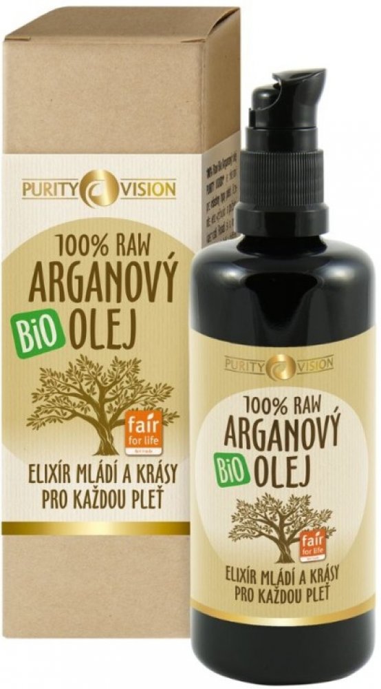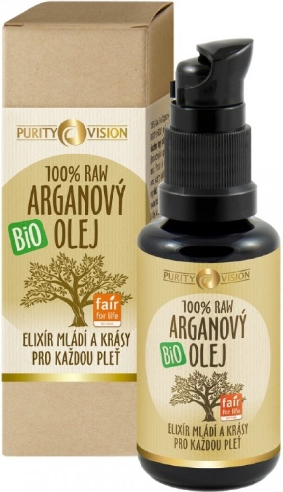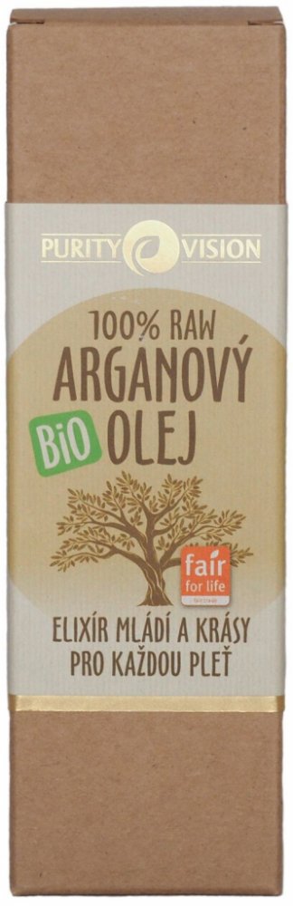 Bio arganový olej PURITY VISION je za studena lisovaný z ořechů stromu argania spinosa. Vyrábí se v manufakturách, které zaměstnávají převážně ženy, a ty tak mají lepší postavení ve společnosti. Díky stabilnímu příjmu se stávají rovnocennými partnery v domácnosti a mohou zajistit vzdělání svých potomků. Manufaktury zcela odpovídají zásadám Fair Trade.