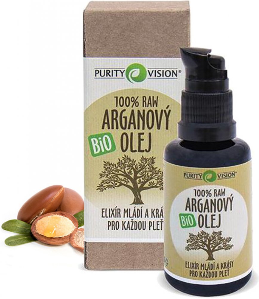100% Raw Bio Arganový olej PURITY VISION® se skvěle hodí jako pěstící noční a denní olej nebo jako šetrný prostředek pro ošetření citlivé pokožky očního okolí. Arganový olej je marocký elixír mládí a krásy, který se hodí pro všechny typy pleti. Někdy se mu také přezdívá „marocké zlato“, a to zcela oprávněně - je totiž jedním z nejdražších a nejvzácnějších olejů na světě.