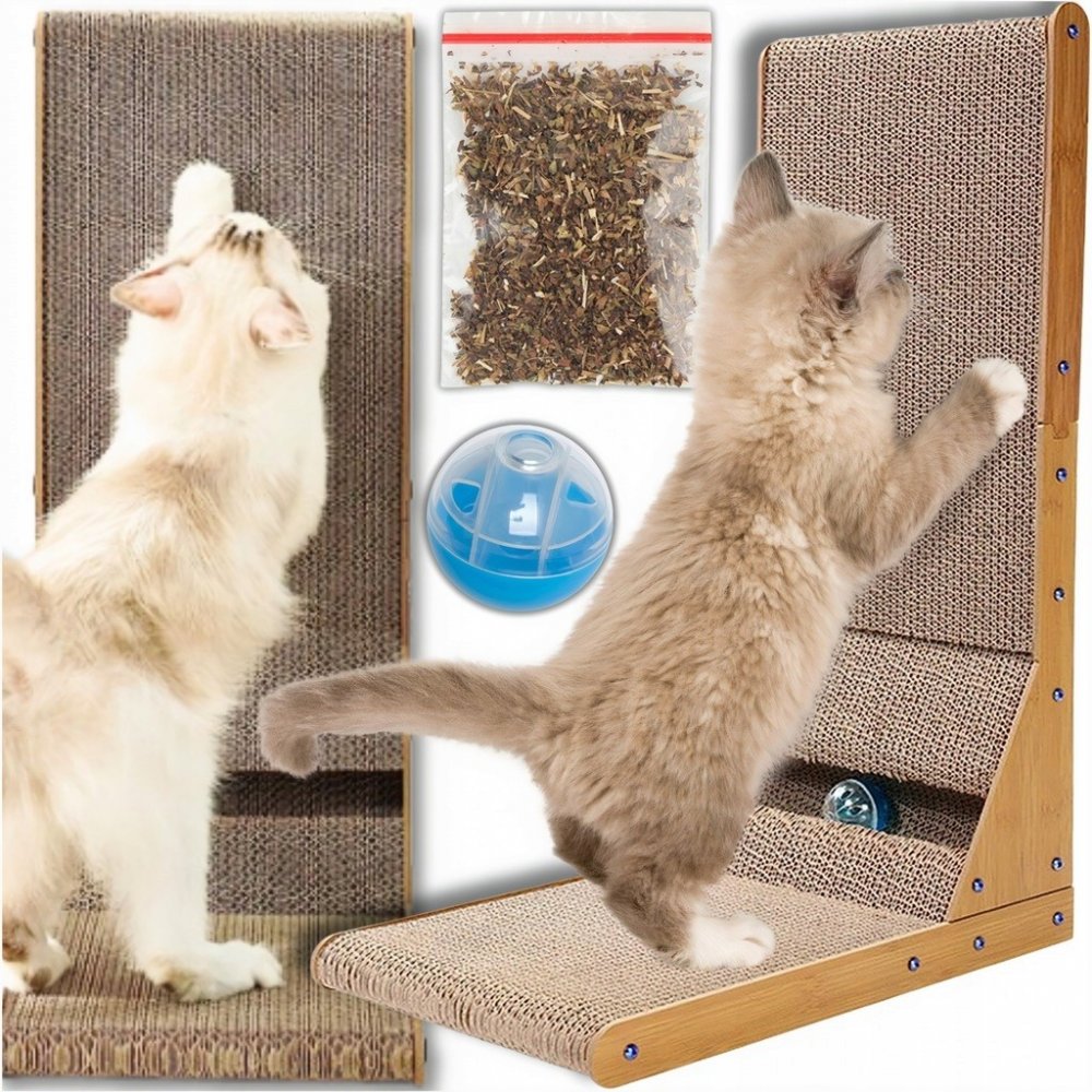 Kartonová škrabadla pro kočky jsou skvělým způsobem, jak poskytnout kočce místo, kde se může škrábat a hrát si. Jsou vyrobeny z odolného kartonového materiálu a mdf. Rohové škrabadlo pro kočky bylo navrženo pro snadnou a rychlou montáž. Doplňkovým prvkem, který vaší kočce udělá radost, je kočičí šnek, který je součástí sady. Catnip je známý tím, že je pro kočky atraktivní a může jim poskytnout extra stimulaci a zábavu. Míč, který je součástí sady, je skvělým doplňkem, který vaši kočku povzbudí k ještě větší aktivitě a pohybu.
