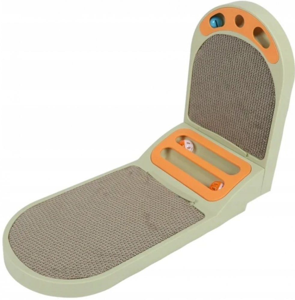 2 v 1 HORIZONTÁLNĚ A VERTIKÁLNĚ - škrabací rohož byla vyrobena ze svislého a vodorovného škrabadla, které dává tvar rohu. Koťátko na něm může ležet, škrábat a navíc si hrát . Škrabadlo je vybaveno tunelem s míčkem na hraní.