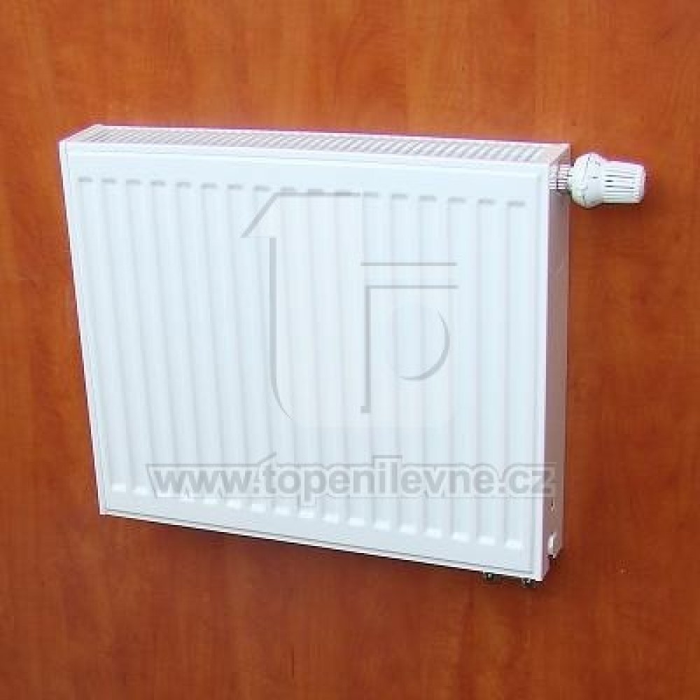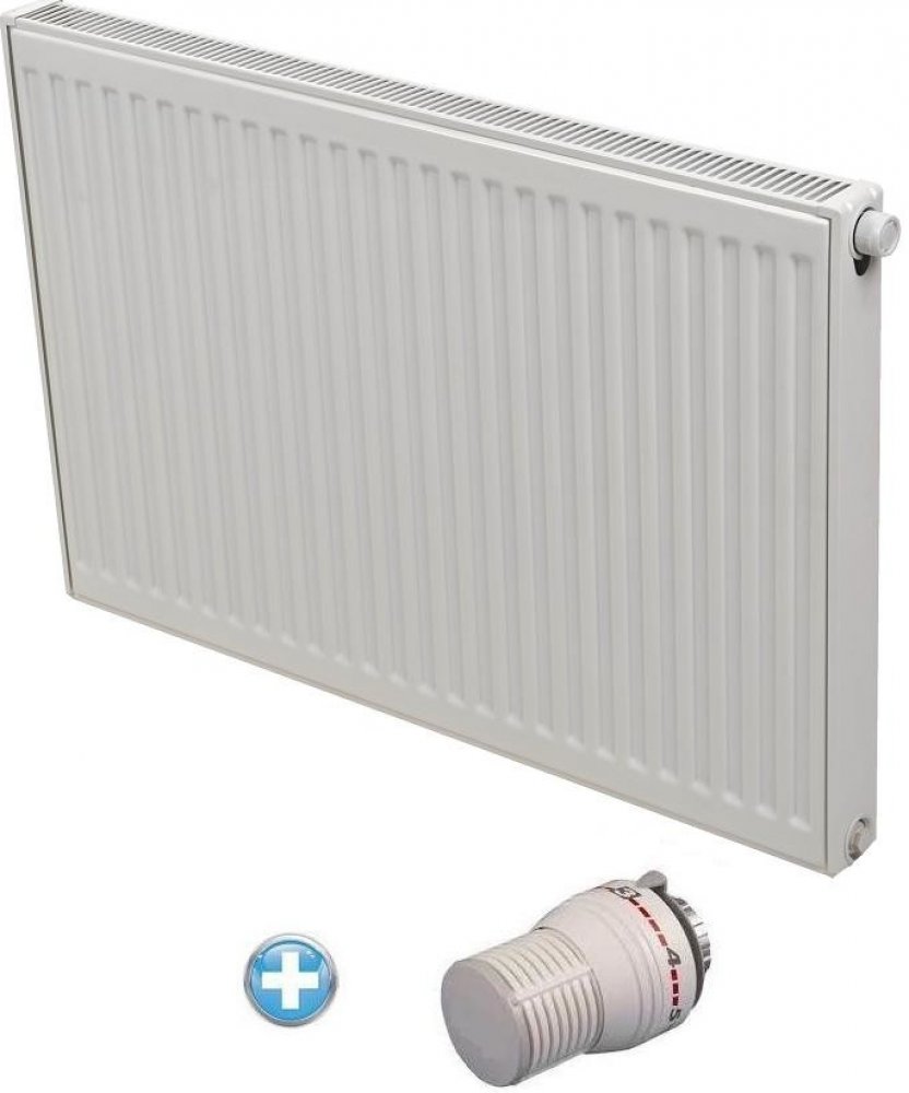 Radiátor Purmo Ventil Compact VK Deskové radiátory s konvekčními prvky a vestavěným ventilem, boční strany chráněné kryty, horní strana s krycí mřížkou. Vestavěný komplet přípojných prvků umožňuje instalovat přívod vody do radiátoru jak z boku, tak zespod. Dva dolní přípojné otvory pro instalaci přívodu z podlahy a čtyři boční přípojné otvory v každém rohu radiátoru. Všechny otvory s vnitřním závi...