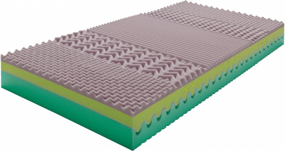 Pro zvýšení komfortu je ložná plocha tvořena viscoelastickou „paměťovou“ pěnou VISCOFOAM®, která je profilována do pěti anatomických zón. Materiál VISCOFOAM® reaguje na tělesnou teplotu, která mění jeho vlastnosti. Viscoelastická pěna se poddá tělu a stabi...