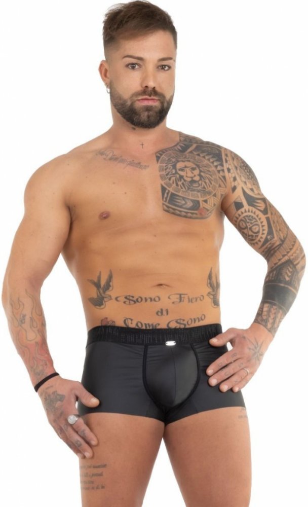 Pánské boxerky s push-up efektem, které zvýrazní vaše přednosti a dodají vám sebevědomý vzhled.Integrovaný push-up efekt jemně nadzvedává a tvaruje, čímž vytváří výraznější a přitažlivější siluetu. Lesklý wetlook materiál dodává moderní a lehce provokativní vzhled. Širší elastický pas zaručuje pohodlí i během celodenního nošení.Efektní push-up efekt pro zvýraznění objemuPřiléhavý a tvarující střih...