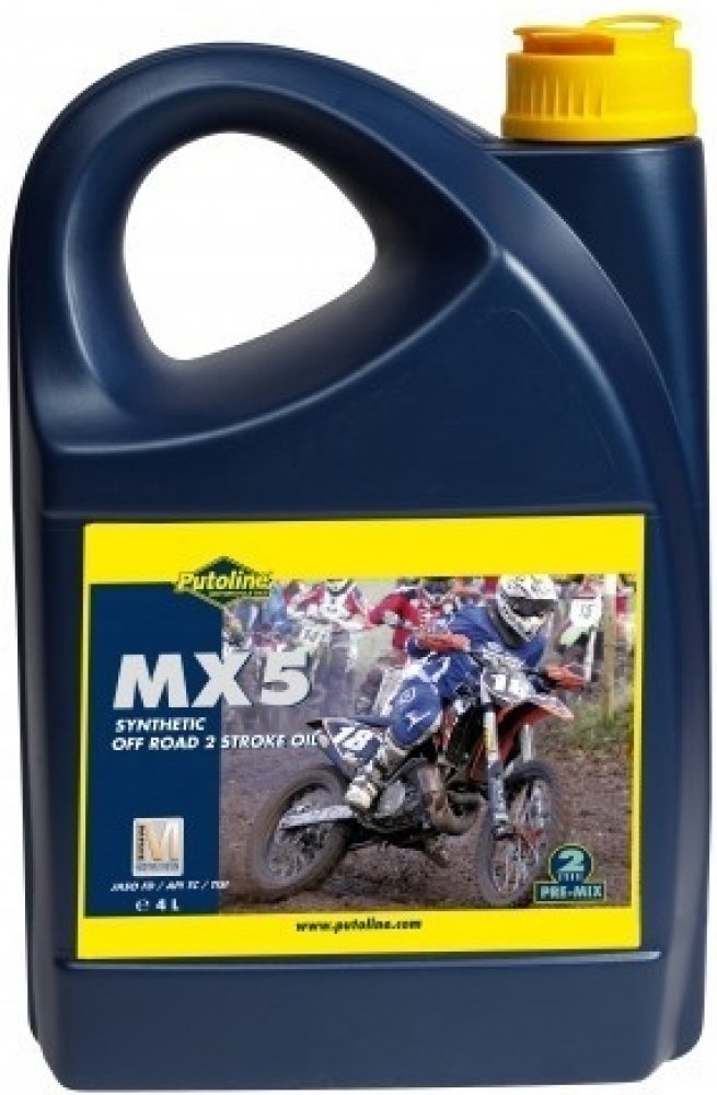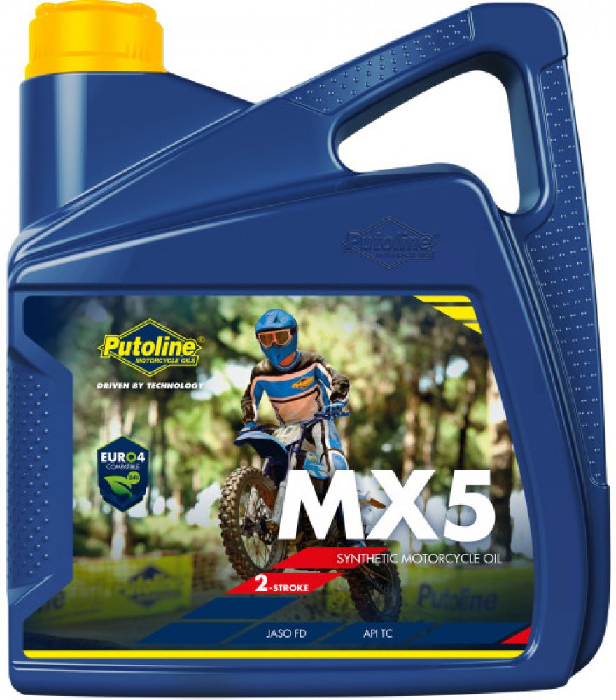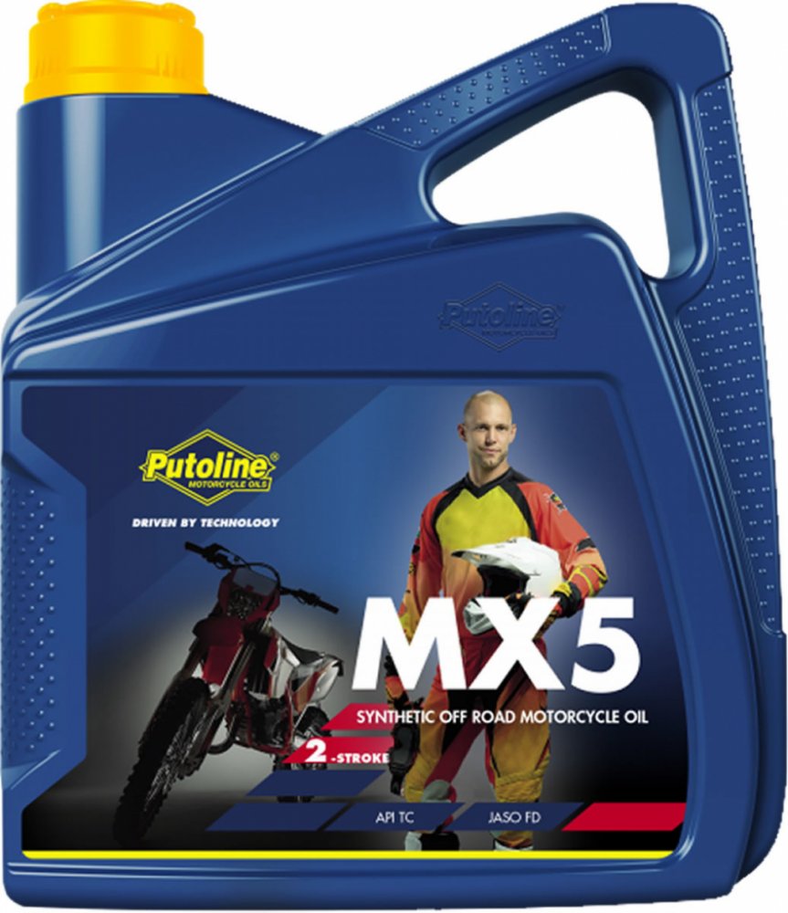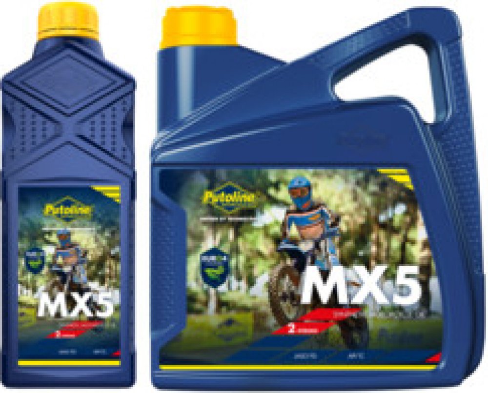 Putoline MX5 je syntetický olej s vůní jahod pro vstřikovač / předředěnou směs, 2taktní závodní motorový olej s MRH pro dokonalou ochranu motoru.