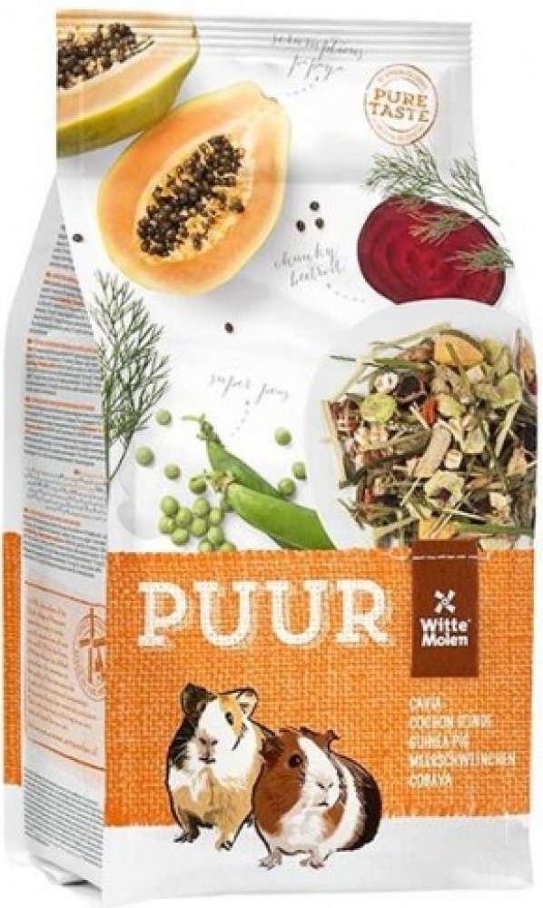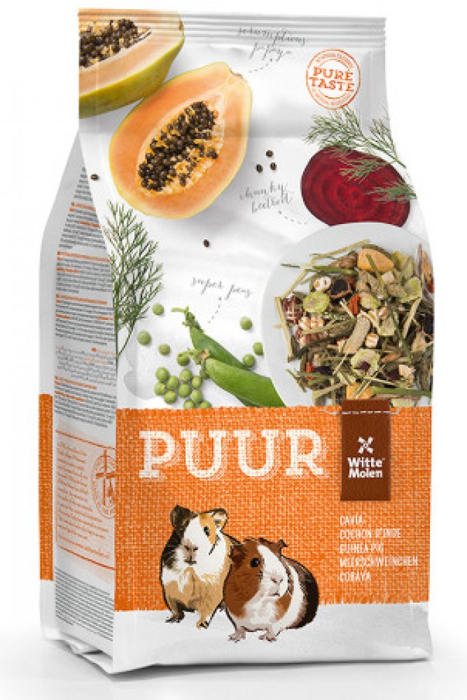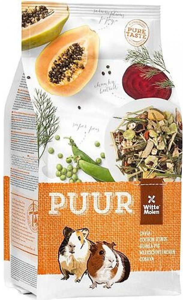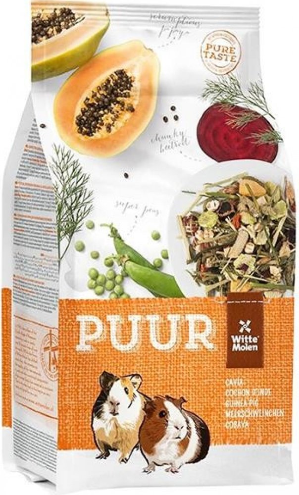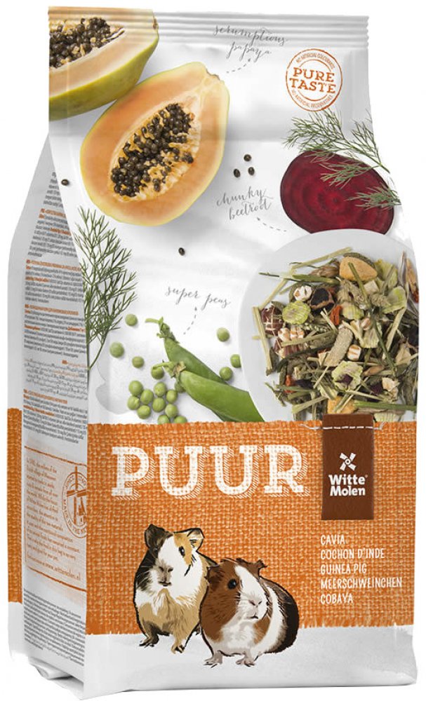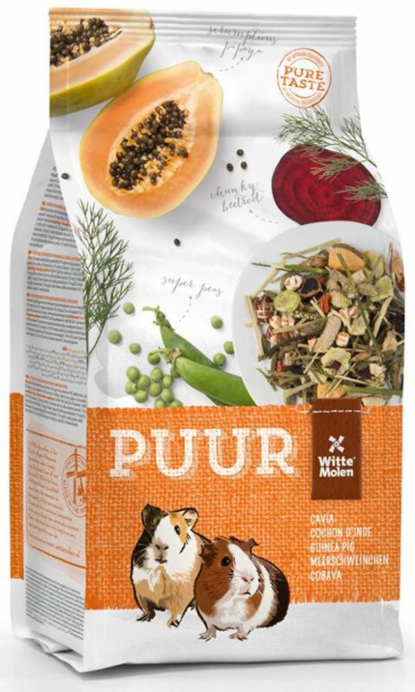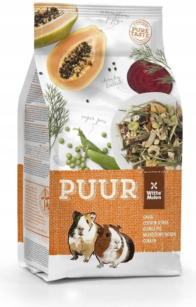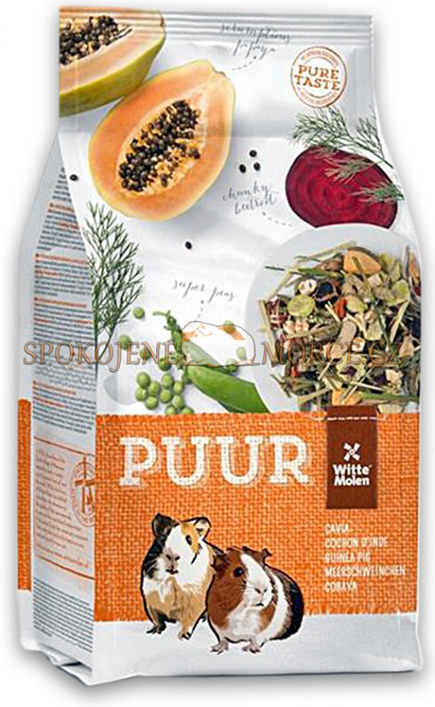 Receptura PUUR guinea pig pro morčata všech plemen obsahuje vše, co morčata potřebují pro plnohodnotný život. Vyvážené složení s vysokým podílem vlákniny pro dlouhodobé zdraví a optimální obrušování zubů, s přidanými vitamíny a stopovými prvky pro zvýšení vitality, prebiotiky pro podporu zdravého trávení a přidaným vitamínem C v množství 1000mg/kg nezbytným pro dlouhodobé zdraví morčat.