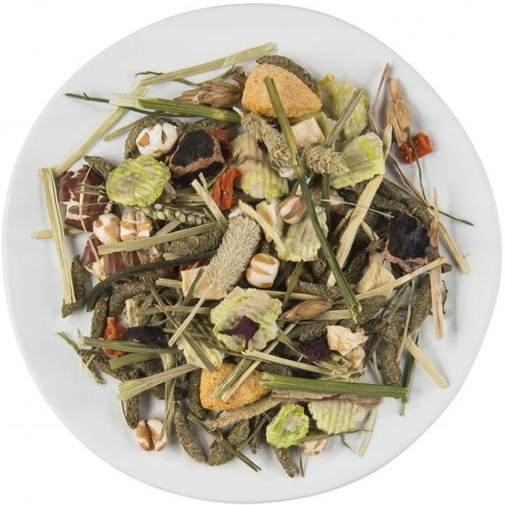Bohatá směs s chutnými a různorodými přírodními surovinami pro vynikající apetit. Obsahuje 29 chutných surovin, včetně bojínku lučního, hrášku, kopru a kousků sušené papáji a červené řepy.