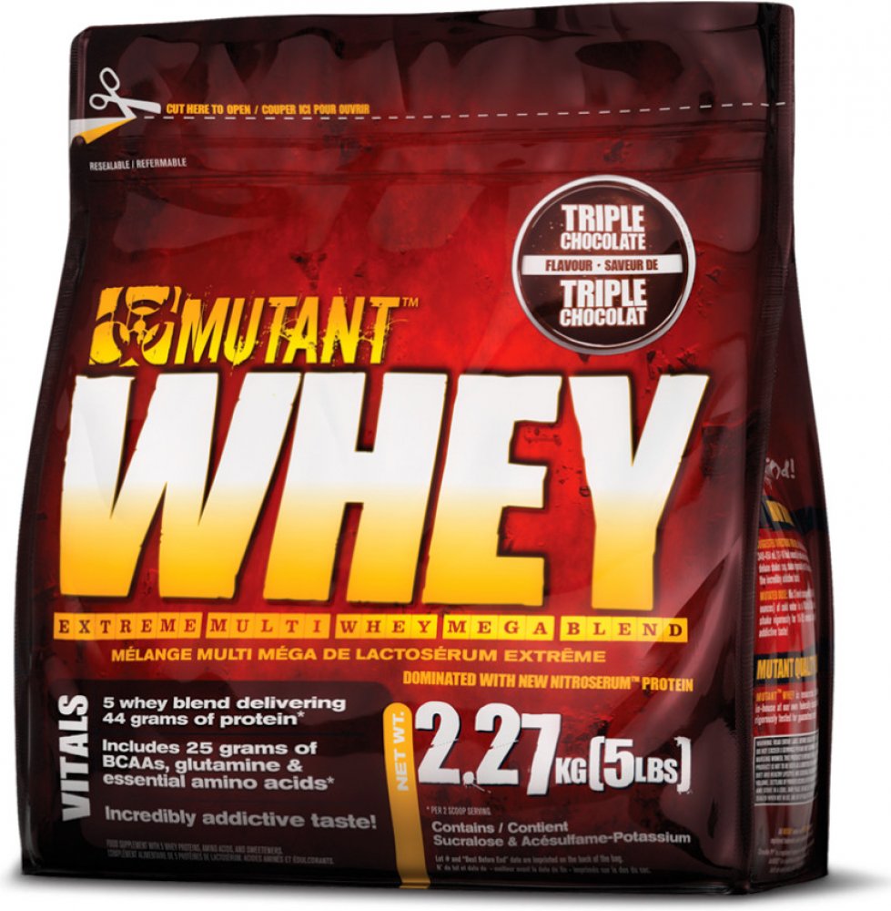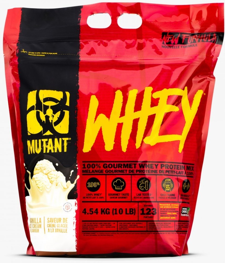 Mutant Whey je špičkový protein složený ze 4 druhů kvalitních syrovátkových bílkovin, jež jsou důležité pro růst svalů. Každý z těchto proteinových zdrojů má jiný čas vstřebávání a tělo je tak díky postupnému uvolňování zásobeno živinami postupně po různě dlouhou dobu. Je obohacen o trávicí enzymy, což zaručuje bezproblémové a rychlé trávení. MCT z kokosového oleje zajišťuje kvalitní zdroj tuků v podobě triglyceridů se středně dlouhým řetězcem.