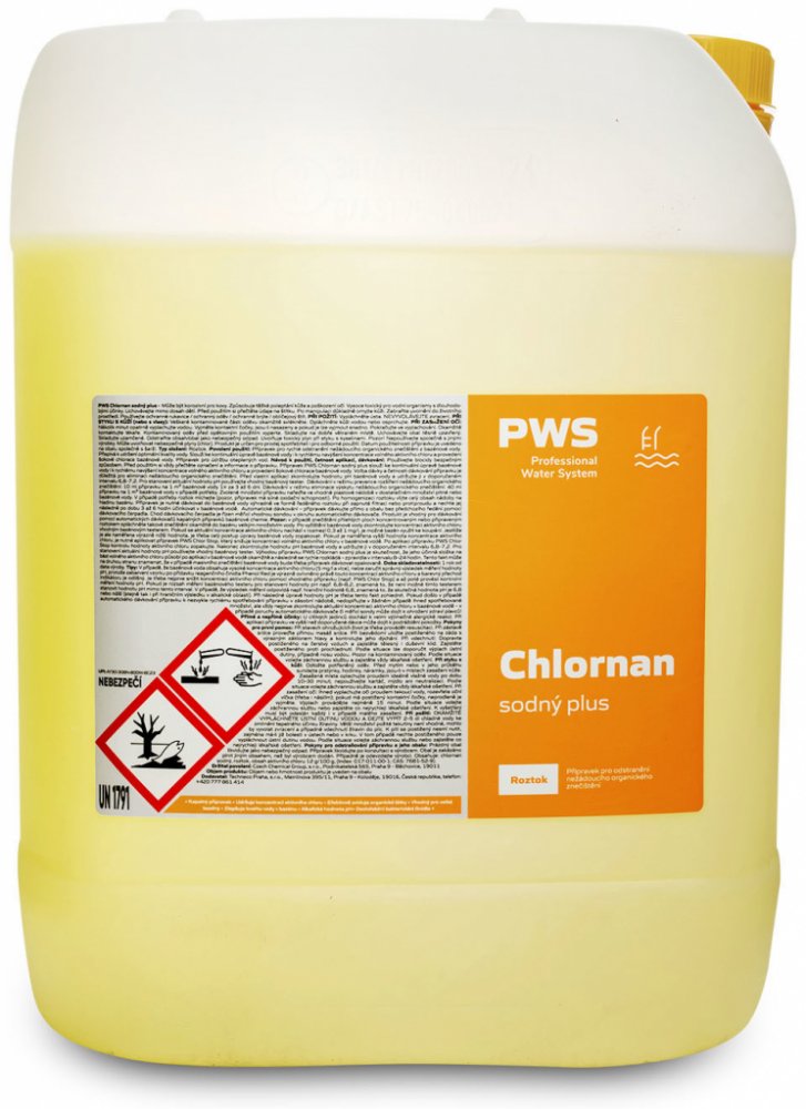 Chlornan sodný je tradiční a prověřený přípravek chlorové chemie, používaný pro udržení koncentrace chloru v bazénové vodě na požadované úrovní. Námi dodávaný Chlornan sodný je vysoké kvality. Chlornan sodný je velice oblíbený, protože se jedná o nejlevnější možnou alternativu úpravy vody, avšak i toto řešení má svá úskalí. Pro pohodlnou aplikaci je nutné mít dávkovací stanici s čerpadlem na Chlornan sodný a sondou pro sledování elektrochemického potenciálu vody, který odpovídá koncentraci aktivního chloru. Tato varianta aplikace Chlornanu sodného je samozřejmě více než pohodlná, protože pouze kontrolujete dostatek činidla, nicméně je poměrně nákladná a je nutné počítat i s náklady na servis. Proto se mnoho uživatelů uchyluje k manuálnímu dávkování, které je sice méně pohodlné, nicméně se jedná o nejlevnější možnou variantou ošetření bazénové vody pomocí chlorové chemie. Při zachování dostatečné opatrnosti a dodržení aplikačních pokynů je však Chlornan sodný pro uživatele výborným sluhou.