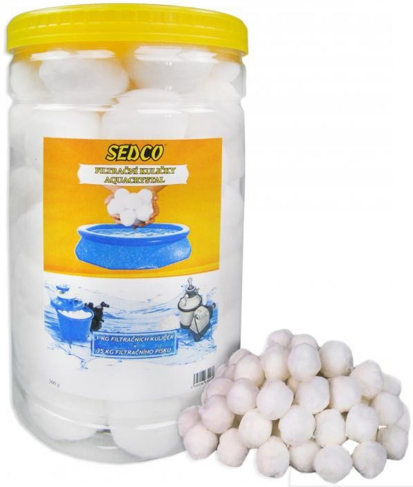 Filtrační kuličky PES AQUA CRYSTAL 500 gNOVINKA - Léto 2018/19Zapomeňte na vše, co jste doposud znali k filtracím. Ať už vířivky, kartušové filtrace nebo pískové... naše filtrační kuličky budou perfektní, levnější, kvalitnější i šetrnější náhradou. Pro funkci stačí pouhých 50-100 g. Kuličky vydrží na několik sezón. A co je nejlepší? Po použití je prostě vyperete a můžete použít znovu.Filtrační kuličky získaly již tisíce pozitivních recenzí a hlasů po celém světě, buďte dalšími ze spokojených zákazníků, kteří využijí tuto novinku léta 2018! Míčky jsou vyrobeny z polysterového mikrovlákna .Tyto kuličky o průměru cca 50-60mm mají velmi vysokou filtrační schopnost. Vláknitá struktura kuličky má schopnost zachycovat nečistoty o velikosti 1.5 mikrometru, zatímco dříve používaný písek zachytí nečistoty jen o velikosti kolem 30-40 mikrometrů. Navíc mají kuličky tu vlastnost, že se dají používat téměř nekonečně dlouho. Po ukončení sezóny tedy stačí kuličky z filtru vyjmout, poté vyprat v pračce a jsou připraveny sloužit další sezónu. Velmi významné je rovněž šetření Vašeho čerpadla, protože kuličková nápň neklade takový odpor jako písek. Momentálně dodáváme 4 druhy balení - 1000 g, 700 g, 500 g a 150 g. Balení 1 kg filtračních kuliček úspěšně nahradí až 35 kg písku!Další výhodou je, že stejnou filtrační náplň můžete použít jako náhradu poměrně drahých a málo účinných filtračních papírových vložek pro použití do bazenů s kartušovou filtrací, do vířívek, zahradních jezírek apod. V případě použití do kartušových filtrací je třeba dokoupit malou speciální filtrační síťku - vložku, kterou přidáte do kartušové filtrace a zde kuličky nasypete. Dodáváme jako samostatný druh. U pískové filtrace nebo vířivky žádnou vložku nepotřebujete, tam stačí kuličky prostě nasypat. Balení Vám vystačí opravdu na dlouho, jelikož pro náplň kartušové filtrace stačí cca 100g kuliček, pro vířivku pak cca 50 g.Technický popis:- Výrobce: Sedco- Množství: dóza 150 g nebo balení 500g/ 700 g/1000 g- Materiál: 100% polysterová mikrovlákna- Barva: Bílá- Po použití stačí vyprat a použít znovu- 1000 g = 35 kg písku- Velmi vysoká sací schopnost- Zachytí nečistoty o velikosti 1.5 mikrometru- Vystačí na několik sezón- Šetří Vaši filtraci - nízky odpor- Kompatibilní s každou filtrací i vířivkouMnožství použití:- Do vířivek: 50-60 g- Do kartušových filtrací: 100-120 g + je třeba zakoupit filtrační síťku (ZDE)- Do pískových filtrací: ±700 g (700 g = 25 kg písku)