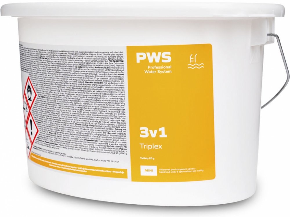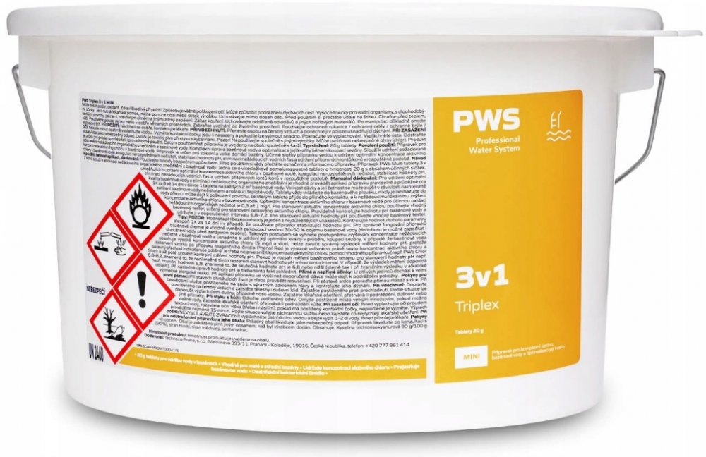 Trio tablety do bazénu jsou základními multifunkčními tabletami 3v1 a spolehlivě upravují bazénovou vodu. Zabezpečují koncentraci aktivního chloru, vločkování nečistot projasnění bazénové vody. Díky těmto vlastnostem není nutné péči o bazén věnovat téměř žádný čas, neboť postačuje pouze aplikovat tablety a kontrolovat hodnotu pH a Cl. Klíčové vlastnosti PWS Trio tablety do bazénu 3v1Kombinují dezinfekci, flokulaci a prevenci vzniku řas v jedné tabletěZajišťují hygienickou čistotu vody a ničí bakterie a mikroorganismyPomáhají shlukovat nečistoty pro snadné odstranění filtracíZabraňují tvorbě řas a udržují vodu průzračně čistouSnadné použitíDávkování:Doporučené dávkování je 1–2 tablety na 2000–3000 litrů bazénové vody každých 5–10 dní, v závislosti na využívání bazénu a teplotě vody. Přípravek je vhodný pro bazény s filtrací o objemu od 1000 litrů.