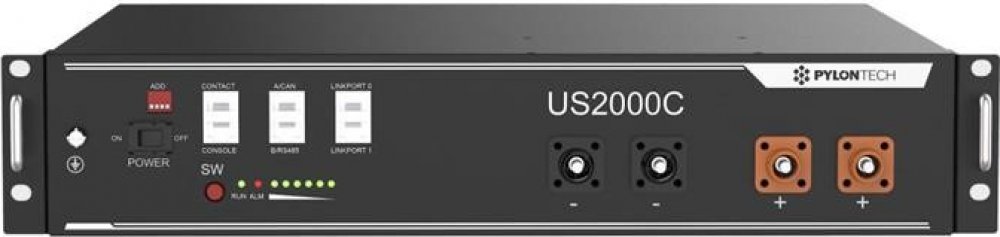 Hlavní výhoda baterie US2000C oproti US2000B je vyšší % DOD při stejném počtu nabíjecích cyklů, a také vzájemná propojitelnost až 16ks baterií US2000C. Základem této baterie je 15 článků LiFePO4, s nominálním napětím 48V a celkovou kapacitou 2,4 kWh.