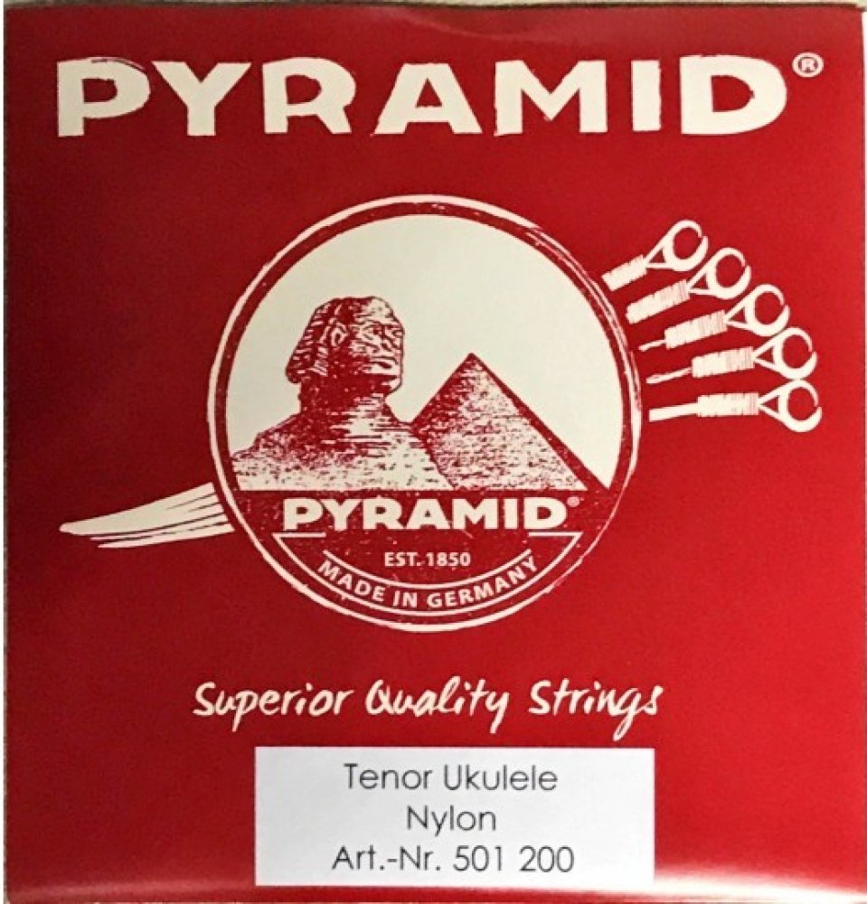 Německé struny na tenorové ukulele - nylonové. Firma Pyramid se zabývá výrobou strun na nejrůznější nástroje. Při výrobním procesu se snaží o co možná nejvyšší kvalitu zpracování v poměru k ceně. Stejně je tomu i v případě nylonových strun na ukulele.
