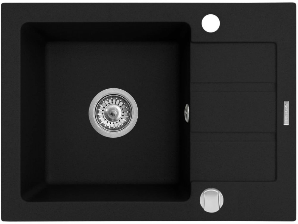 Dřez s krátkým odkapem Pyramis Next v barevné variantě Volcano je vyroben z vysoce jakostního přírodního granitu Pyragranite, který obsahuje 80% drceného kameniva s příměsí barviv a pojiv. Díky tomu odolává teplotám až 280 C a je velmi odolný proti vrypu a mechanickému poškrábání.