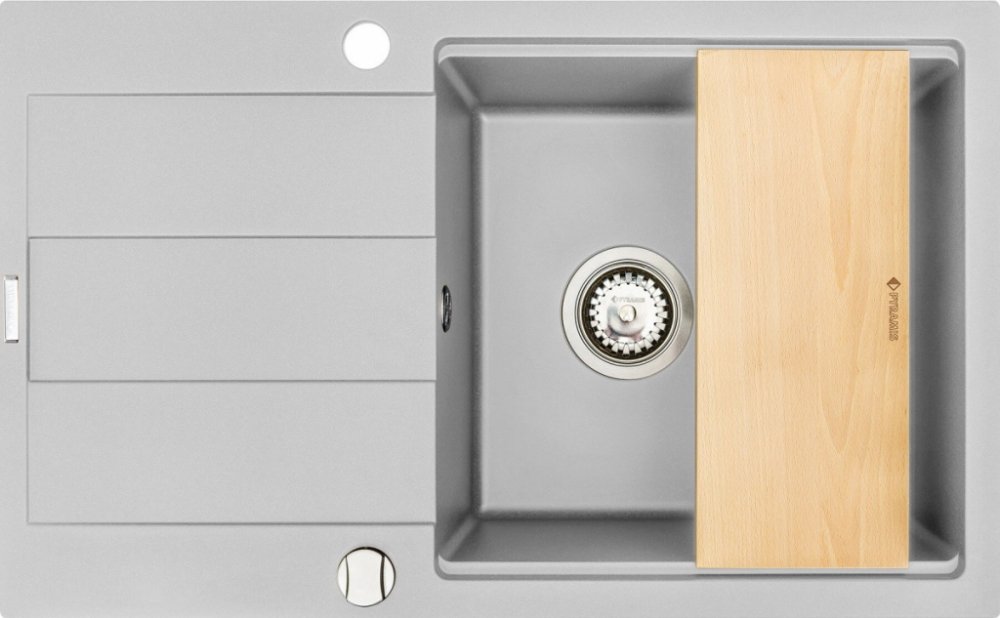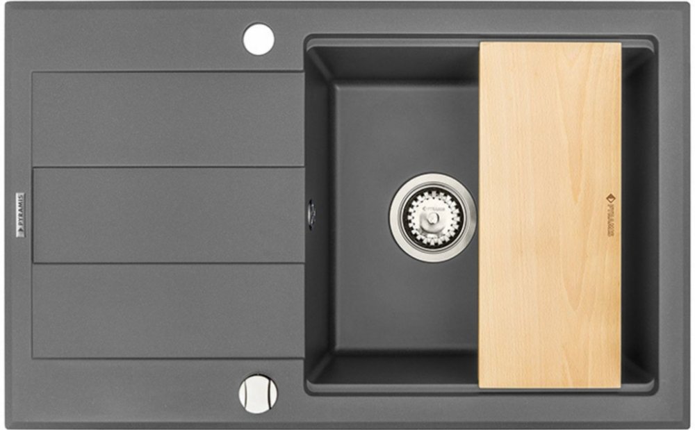 Dřez s odkapem Pyramis Sparta Plus má vaničku s dostačující hloubkou 19 cm a také je velmi prostorná. Dřezy Pyramis jsou vyrobeny z vysoce jakostního přírodního granitu Pyragranite, který obsahuje 80% drceného kameniva s příměsí barviv a pojiv. Díky tomu odolává teplotám až 280 C a je velmi odolný proti vrypu a mechanickému poškrábání.