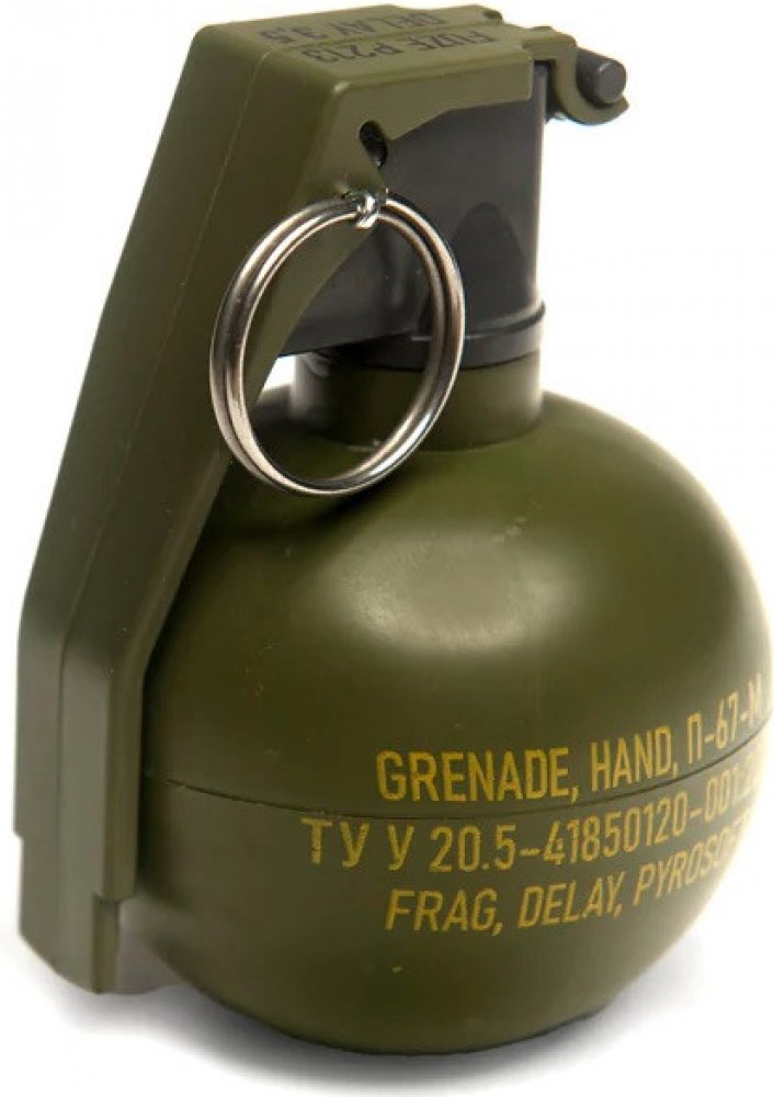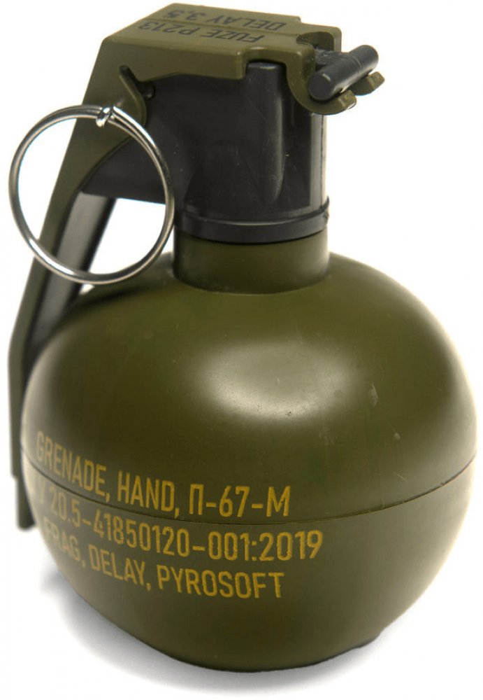 P - cvičný granát plněný metalickým prachem (akustický, kopíruje váhu a standardy reálného granátu)