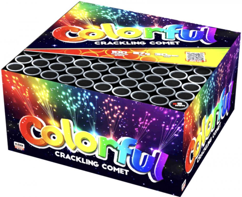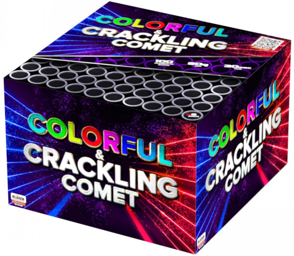 Ohňostrojový kompakt Colorful and Crackling comet má tvar krychle. Uvnitř kompaktu jsou uloženy trubice ( moždíře ) s jednotlivými ranami.