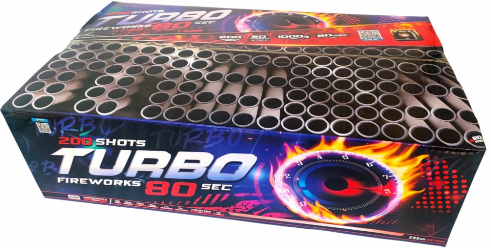 Jedná se o kompakt ve tvaru kvádru, uvnitř kterého jsou uloženy jednotlivé rány. Kompakt umístěte na rovnou a pevnou podložku. Následně během tří až šesti sekund po zapálení zápalnice kompaktu, začnou vystřelovat do výšky cca 15 až 50 metrů (dle ráže) efekty. Efekt: mix 20 různých efektů, TURBO - rychlý sled vybuchujících efektůPočet ran: 200 ranPrůměr moždíře: 20 mmDoba trvání efektu: 80 sTřída nebezpečí: Kategorie F2ADR zařazení: 1.4GBalení v kartonu: 1/1Bezpečnostní pokyny: kompakt musí stát na rovné, pevné a nehořlavé podložce. Je vhodné kompakt ukotvit aby nedošlo k jeho převržení v průběhu činnosti. Při zapalování se nikdy nenaklánějte nad výmetnou část kompaktu. Po zapálení odstupte alespoň o 10-20 metrů. Vždy postupujte podle návodu na výrobku!Podívejte se také na Bezpečnostní desatero: Jak odpalovat pyrotechniku.