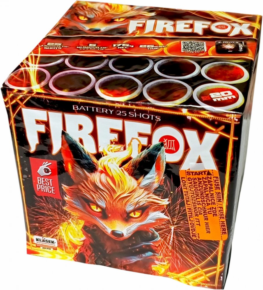 Pyrotechnika Kompakt 25ran / 20mm Best Price FirefoxJedná se o kompakt ve tvaru krychle, uvnitř kterého jsou uloženy jednotlivé rány. Kompakt umístěte na rovnou a pevnou podložku. Následně během tří až šesti sekund po zapálení zápalnice kompaktu, začnou vystřelovat do výšky cca 15 až 50 metrů (dle ráže) efekty.Efekt: mix 5 efektůPočet ran: 25 ranPrůměr moždíře: 20 mmDoba trvání efektu: 25 sTřída nebezpečí: Kategorie F2ADR zařazení: 1.3GBalení v kartonu: 12/1Bezpečnostní pokyny: kompakt musí stát na rovné, pevné a nehořlavé podložce. Je vhodné kompakt ukotvit aby nedošlo k jeho převržení v průběhu činnosti. Při zapalování se nikdy nenaklánějte nad výmetnou část kompaktu. Po zapálení odstupte alespoň o 10-20 metrů. Postupujte dle návodu na obalu.