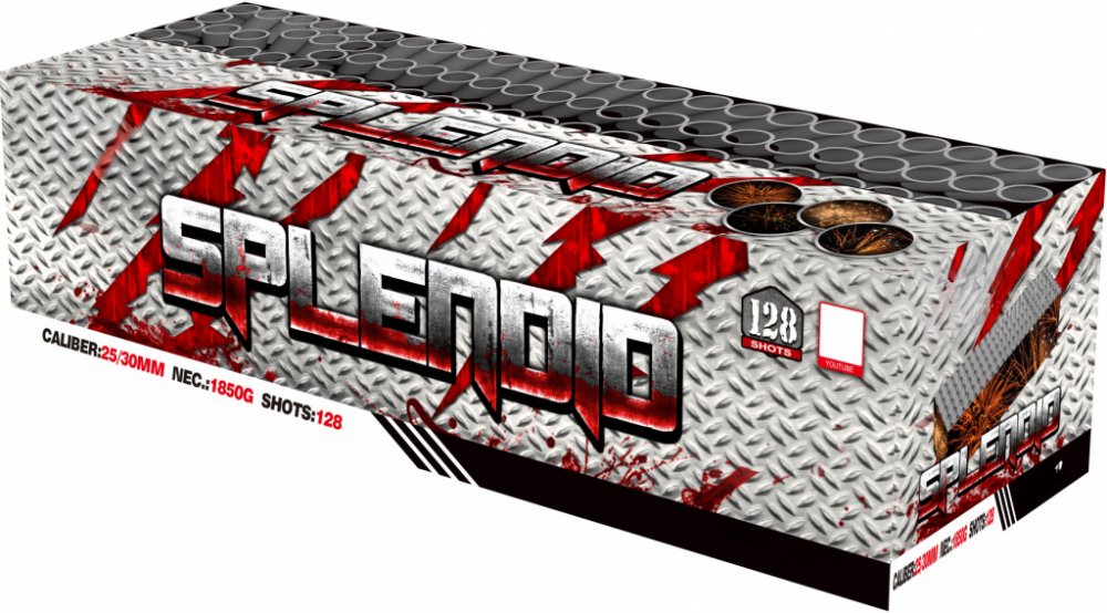 Ohňostrojový kompakt Splendid má tvar kvádru. Uvnitř kompaktu jsou uloženy trubice s jednotlivými ranami.