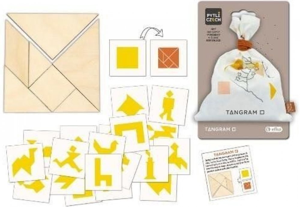 Tangram je dřevěný hlavolam, který můžete skládat do různých obrazců buď dle předlohy nebo podle vaší fantazie. Navrhli jsme jej tak, aby na cestách nezabral moc místa. Díky originálnímu designu se jistě stane i pěkným dárkem. Vyrobeno v České republice.