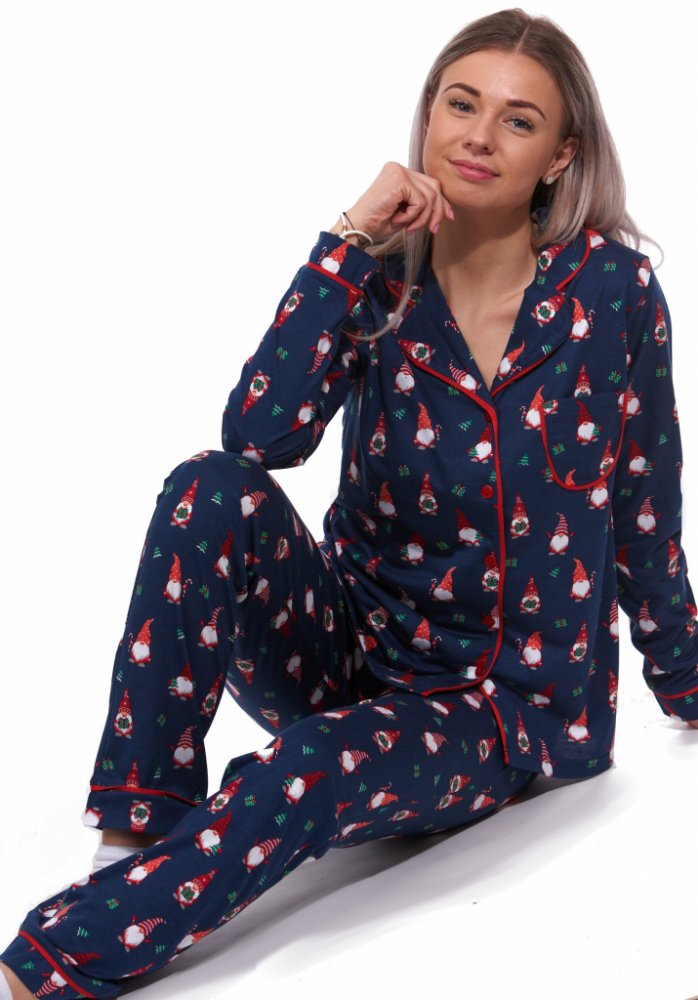 Modré i červené pyžamo pro ženy na kojení se skřítky