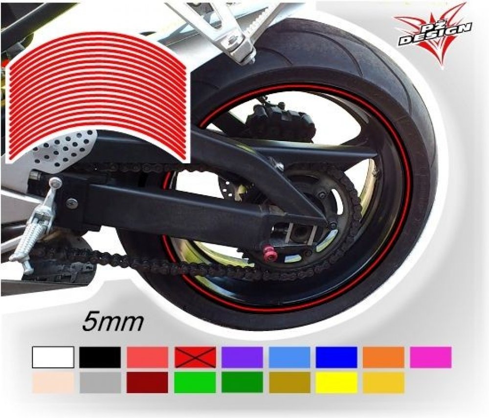 PZ Design Proužky na ráfky v šířce 5mm červená tm.