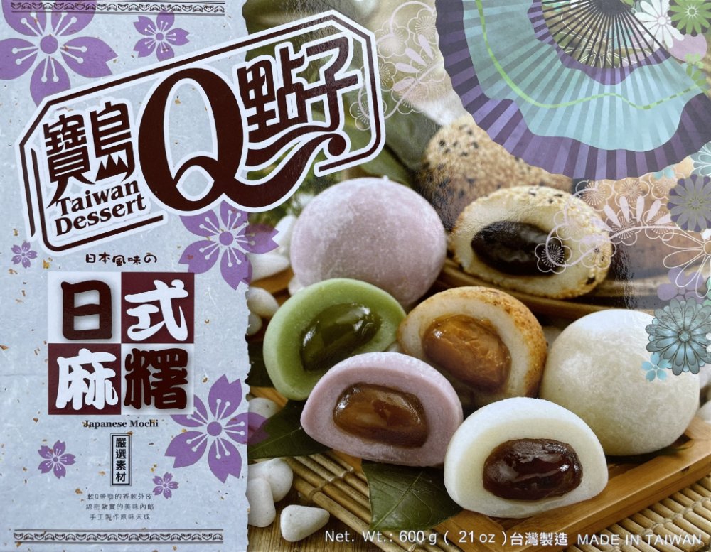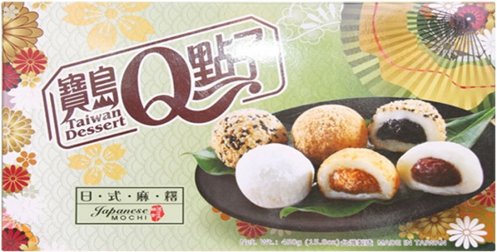 Složení: maltóza, lepkavá rýže, cukr, stabilizátor (E144), pasta z červených fazolí (červené fazole, cukr, maltóza, palmový olej), arašídové máslo (arašídy, cukr, palmový olej, sůl, emulgátor: E471, arašídová příchuť, vanilkový prášek), sezamová pasta (sezam, cukr, palmový olej), pasta ze zeleného čaje (prášek ze zeleného čaje, fazole, cukr, maltóza, palmový olej), pasta ze sladkých brambor (sladké brambory, fazole, cukr, maltóza, palmový olej, arašídy, sezam, prášek ze zeleného čaje, přírodní barviva (E163, E162), konzervační látka (E200)