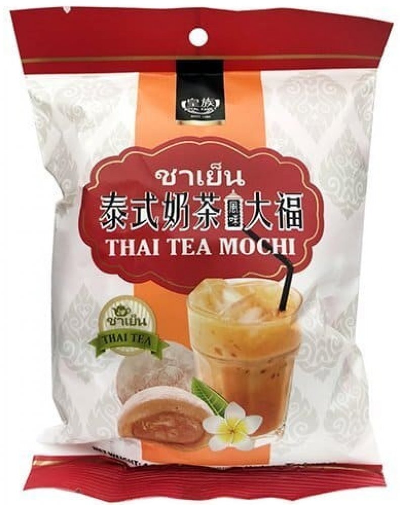 Složení: Maltóza, lepkavá rýže, voda, cukr, trehalóza, zahušťovadlo E1442, bílá čokoláda (cukr, kakaové máslo, sušené plnotučné mléko, sójový lecitin, vanilkový extrakt), pasta z thajského čaje (fazole, cukr, máslo, prášek z černého čaje, barviva (E162, E160a), aroma), palmový olej, emulgátor E471...