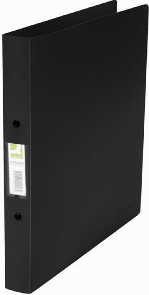 Dvoukroužkový pořadač s neprůhledným povrchemKapsa na hřbetní štítekTyp kroužku: O mechanikaPrůměr kroužku: 25 mmMateriál: PPTloušťka materiálu: 600 micŠíře hřbetu: 3,3 cmKapacita: 230 listůBarva: černá