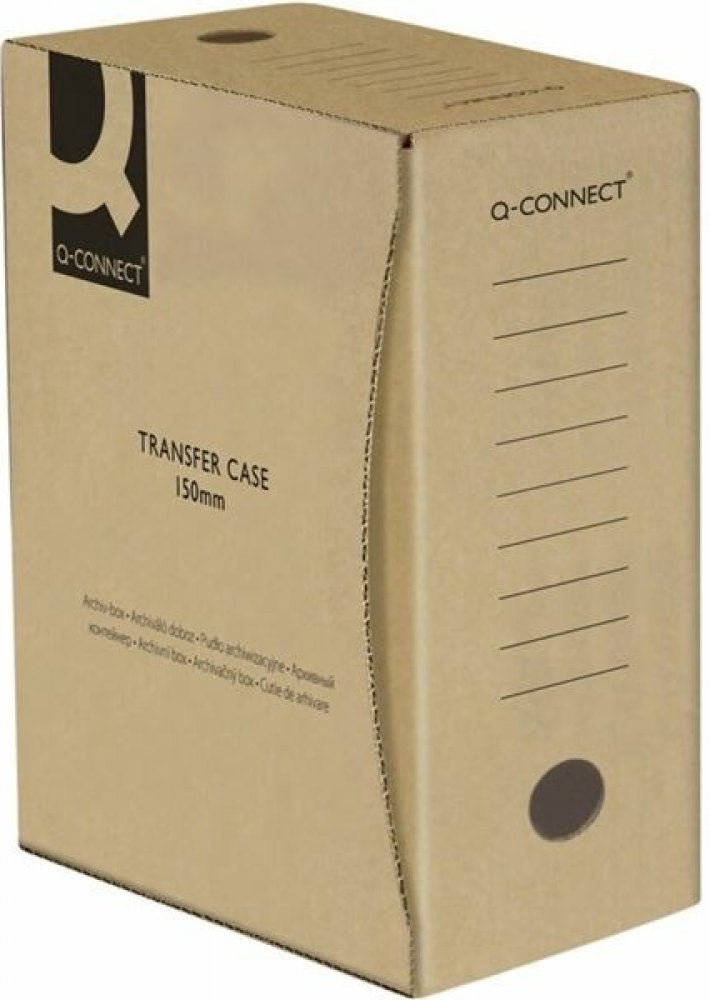 Vyrobeno z třívrstvé vlnité lepenky 400 g/m2Produkt neobsahující kyselinyŠířka hřbetu: 150Kapacita: až 1 500 listů o 80 g/m23 otvory pro usnadnění vkládání/vyjímáníRozměry: 150 x 339 x 298 mmBarva: šedá