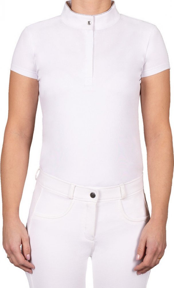 Kvalitní dětské závodní triko vyrobené z pružného materiálu. Opatřeno je límečkem a krátkým zipem, který je jištěný drukem. Zdobeno je decentním třpytivým prvkem na límečku.