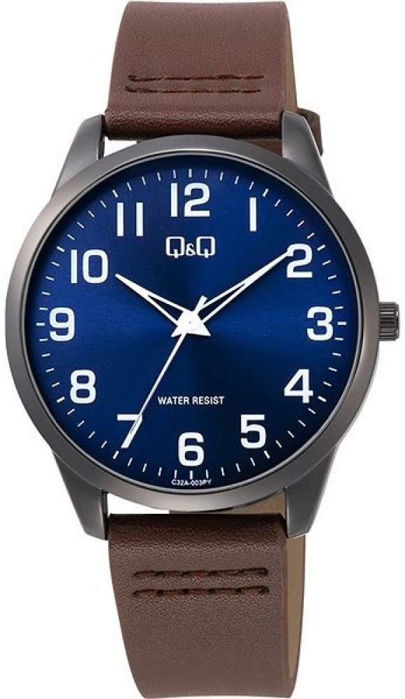 Q&Q analogové kůže kov 30 m bateriové minerální elegantní pánské 22.5 cm bateriové - quartz kulaté hnědá modrá trnová spona pro běžné použití (30–50 m) bez svícení s nenáročnou údržbou (quartz) bez chytrých funkcí na ruku s arabskými číslicemi stříbrná ocel 4.2 cm střední 42.0 mm