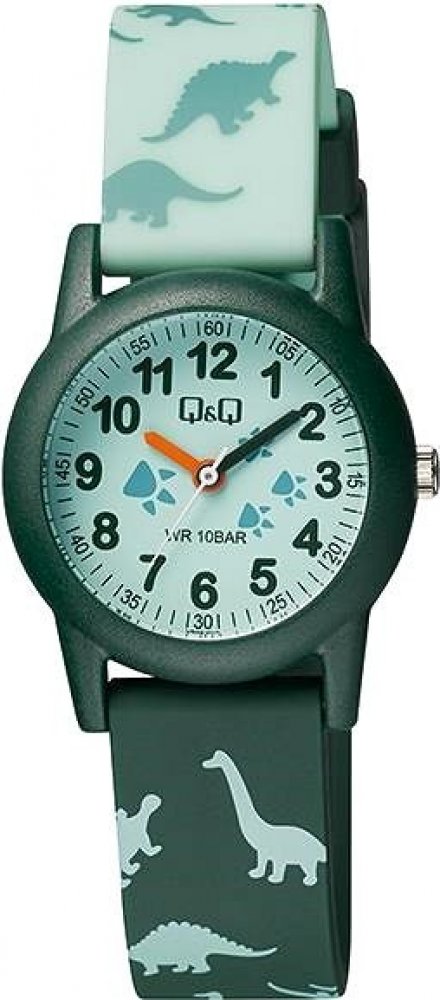 Q&Q KIDS VR99J010Y jsou kvalitní dětské hodinky, které by se na vašem nápěstí zaručeně vyjímaly. Najdete na nich kulatý ciferník o velikosti 30 mm. Efektivní Quartz technologie je příslibem nadstandardní přesnosti měření a velmi dlouhé výdrže baterie. Materiál řemínku tvoří plast a dodává jim šmrnc při zachování naprostého pohodlí při nošení. Hodinky značky Q&Q můžete vzít i do bazénu, nehodí se ale do větších hloubek. Stupeň krytí hodinek je 100 m (10 ATM). Zásadní znaky dětských hodinek Q&Q KIDS VR99J010Y Strojek s Quartz technologií běží na baterii, která má dlouhou výdrž Řemínek tvoří plast Vodotěsnost hodinek Q&Q: 100 m (10 ATM) Ciferník nese barvu: zelená Řemínek má barvu: zelená Dětské hodinky jsou řízeny strojkem typu quartz Sklíčko: plastové