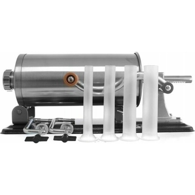 Kvalitní plnička klobás a jitrnic ručním pohonem. Plničku s kovovou a hliníkovou konstrukcí lze připevnit ke stolu, má 5 litrový nerezový plnicí válec. Píst lze otočit o 90...