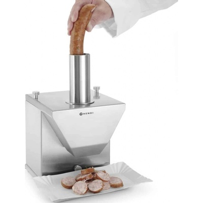 Elektrický kráječ klobás s dvojitým ostřím a nastavitelnou tloušťkou Extra dlouhý vkládací držák pro různé druhy klobás Maximální průměr 48 mm Připojení : 230V Výkon: 135 W...
