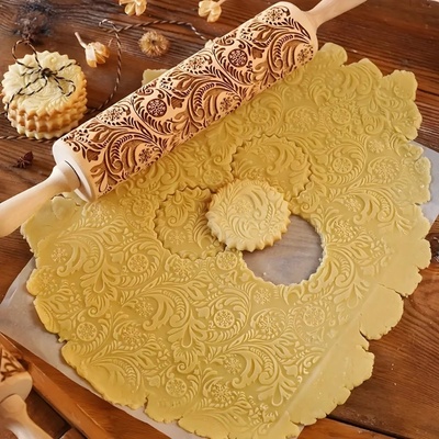 Dřevěný váleček s motivem-39cm x 4,5cm Tento dřevěný váleček na těsto je neocenitelným pomocníkem pro každého vášnivého pekaře. Jeho povrch je precizně vyřezáván do složitých...