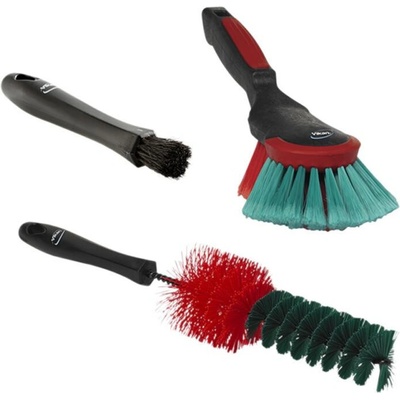 Sada 3 kartáčů pro čištění vozidel: 1 x 524652 ergonomický měkký kartáč s třepenými vlákny, 320 mm 1 x 525352 kartáč na mytí ráfků, 335 mm, Ø 65 mm 1 x 631559 kartáček s...
