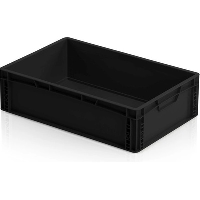 Plastová ESD Euro přepravka 600x400x170 mm, plný úchyt. Bezpečná pro elektrokomponenty. Vyrobeno z vodivého ESD materiálu. vyrobeno z PP kopolymeru - vodivého ESD...