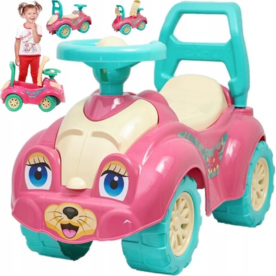Odrážedlo auto v růžové barvě s volantem a opěrkou zad. Přihrádka pod sedadlem je praktická na nezbytnosti pro vašeho malého cestovatele. S tímto veselým odrážedlem si užije...