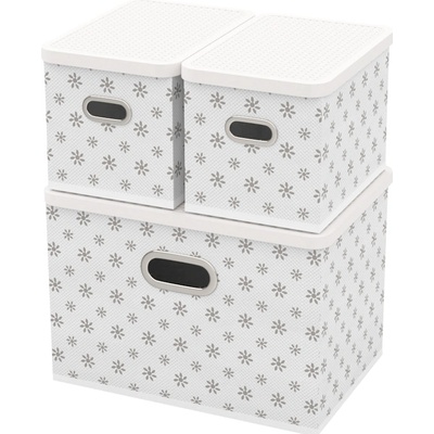 Úložný box s víkem - sada 3 ks Skládací textilní box s plastovým víkem. Ideální do skříní, polic, regálů pro přehledné skladování. Úložný box má kovový úchop pro snadnou...